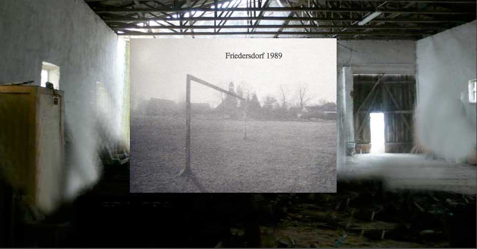 In der ehem.LPG-Halle -neben dem Teil für das Essen vor dem Prospekt des Berliner Schlosses nach dem Kriege vor dem Abriss(gemacht Kleist/für die Marquise von O...) - ein Raum für die Prospekte aus der Marquise von O..(auch für Kleist gemacht)in den Zuständen des 19.Jahrhunderts und heute.