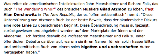 Landraub seit Anfang, Okkupation allen sichtbar, Atomsilos ohne Kontrolle, die sie von anderen fordern. Eine Demkratie ohne Verfassung, auf den Bajonetten der USA, und wo sie hinkommen, Zesrtörung, Tod mit gezielten Tötungen ohne Richter jenseits der eigenen Grenzen, immer Sonderrechte einfordern mit Todeskommandos in aller Welt, Fälscher, Killer, Hohn unterwegs, voll Tricks und Geschäften an denen die Welt zugrrunde geht, Eiseskälte, wenn sie sprechen vor dem Paralament der Menschheit, das sie legitimierte und der sie das Wort gebrochen, das sie gründete. Aus dem Kreis der Kulturnationen ausgetreten ohne Status unter ihnen, eine Kultur, die sie den anderen verwehren, und die wollen Krieg des Atoms, weil einer unter den anderen nicht passt, mit täglichem Säbelrasseln, trubblmaker No.1 der Welt., verhasst, verlacht, am Tage, der eigentlich der Ihre war, weil man ihnen Unrecht tat, und alles vertan. Wenn überhaupt das Drama, und hie,r und auf den Bühnen nur Unfug, und Schweigen, Bestochene, als ob sies fliehen, aus Angst, wieder, wo ist der Mut unter den UNseren. Und wo denn sonst.Inzwischen dumm, wers nicht weiss, feige, wers nicht sagt. Es ist genau hier an dieser Erkenntnis, wo die Politik beginnt, und wo die Kunst ihre Notwendigkeit zeigen kann. Nicht zu ändern, ist sie da, aber zu wissen eine Instanz -ohne dies eine Lüge. Alles.