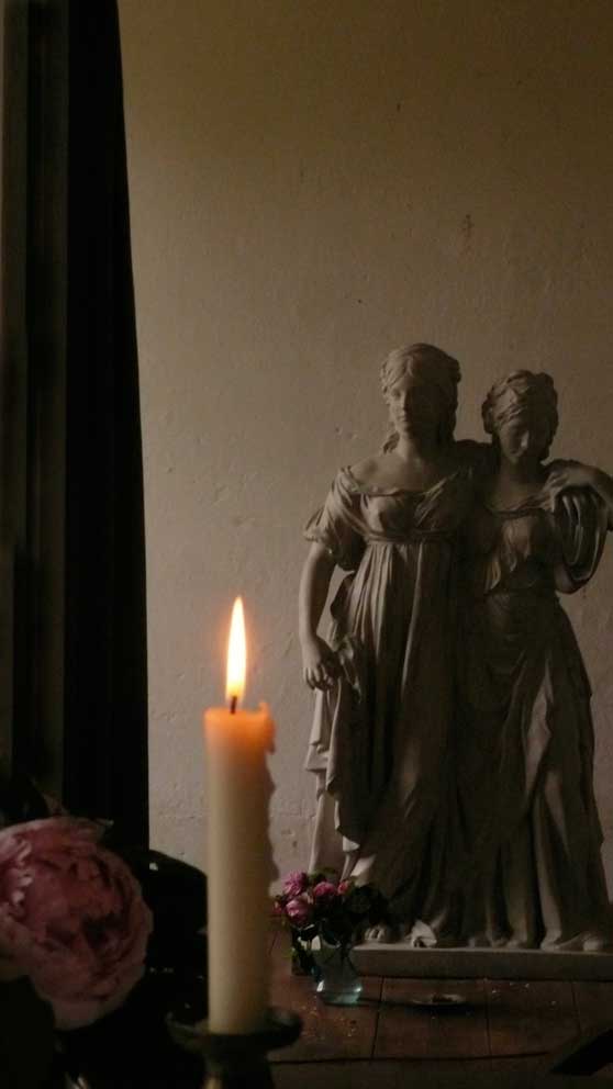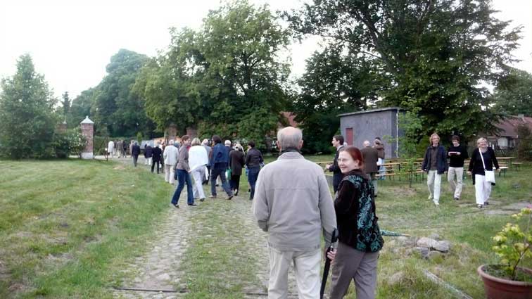 Die Idee ist realisiert. Für einen Tag miteinander verbunden was zusammengehört. Das Dorf eins und den Gästen offen. Für Worte, Gesang und gehen und essen, zwischen Kirche und Haus mit Ausflug auf der Trebel zu den Projektionen der Geschichte und dem, was wir sind, wenn wir gut sind, einfach und guten Sinnes. Weg und Kirche mit Turm nach oben unserer eingedenk. Nur in diesem Universum geht es. Ernte der Rosen vor den Feldern der Menschen.