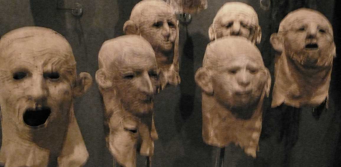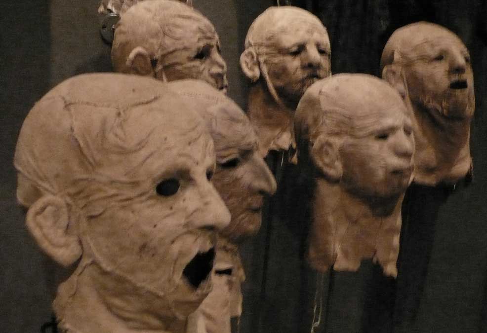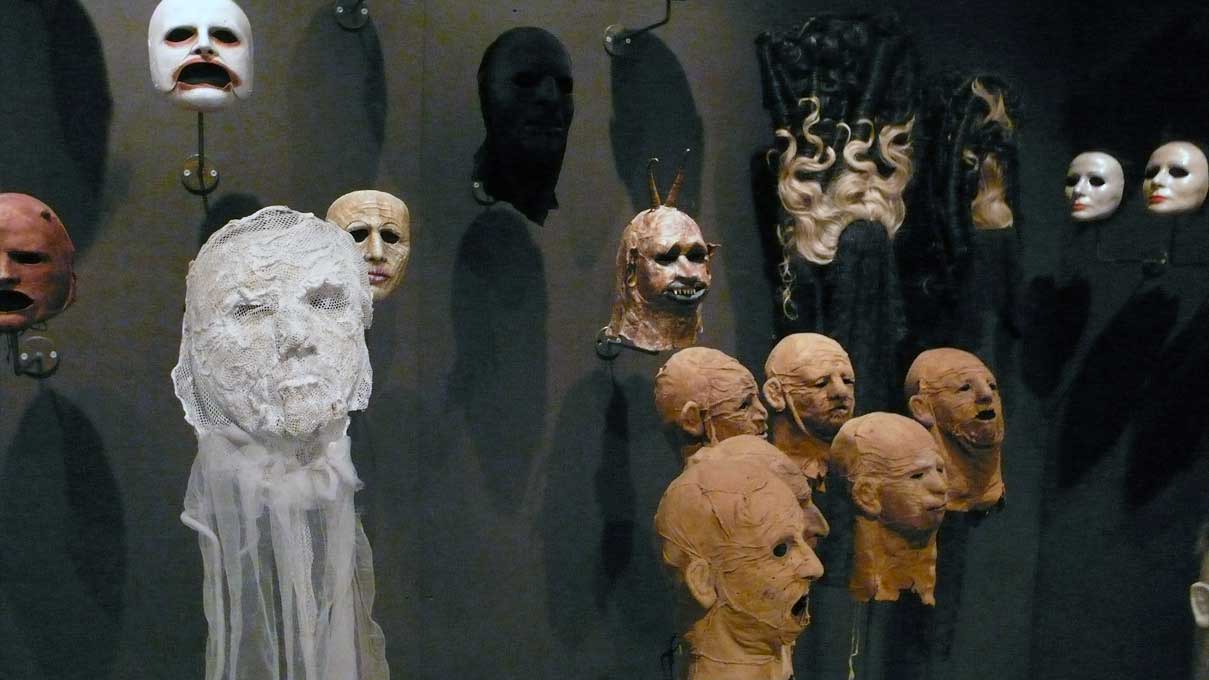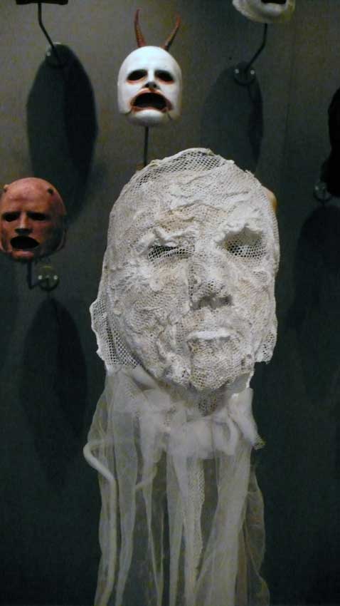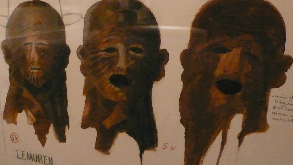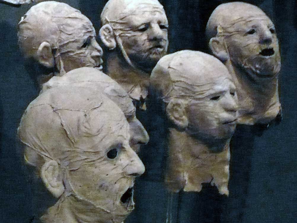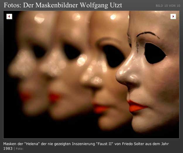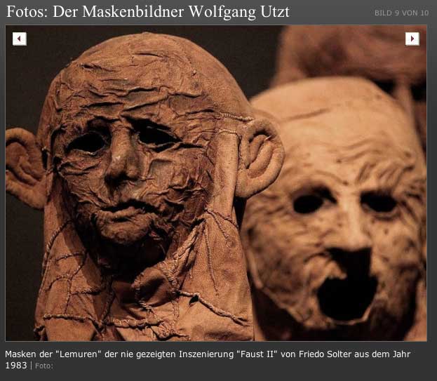 hier aus den Arbeiten zu Faust 1 und 2 - 8Stunden 1983, am Deutschen Theater in Ostberlin, der vor der Premiere zum 100 Geburtstag des Haues abgesetzt und nie gezeigt wurde. Die Masken überlebten als Einziges.