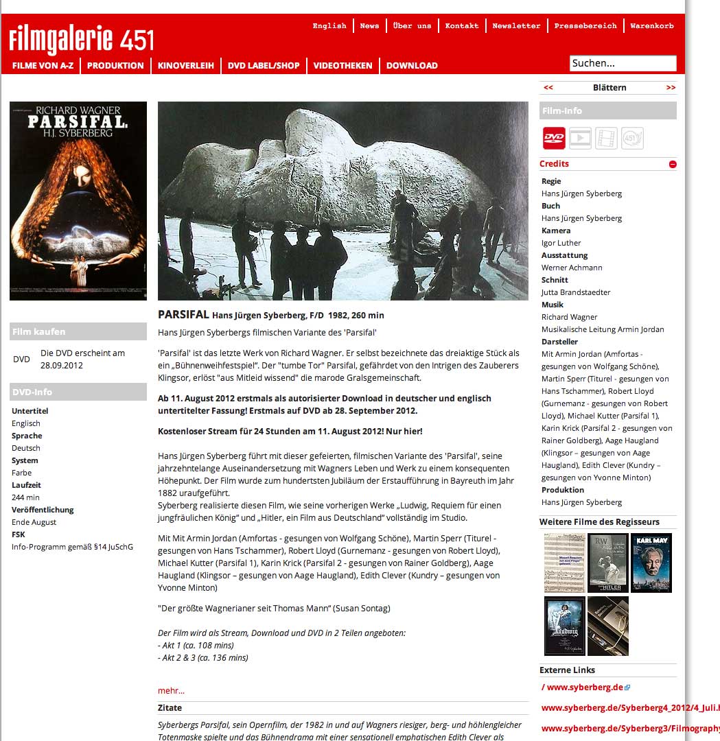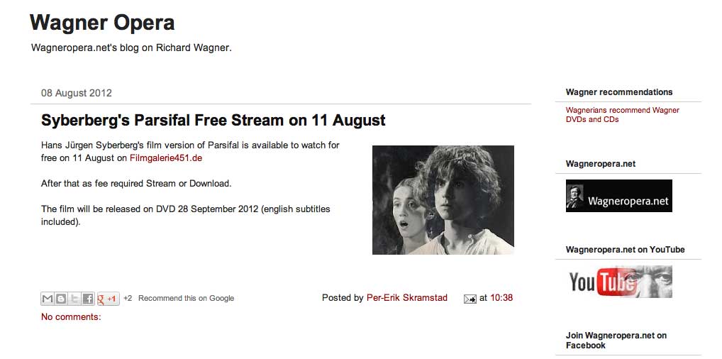 Kleine Materialiensammlung zum Parsfal-Film am 11. August morgen ab Mitternacht im Internet für 24 Stunden frei.