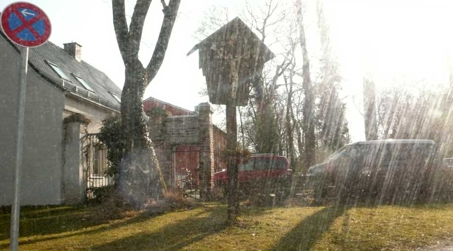 Vorbeifahrend an den letzten Resten der Schloss Biederstein. Dem Hausmeisterhaus heute des Studentenwohnheims, das mich wegen sozialer Unvereinbarkeit -damals fridch aus der DDR geflohen und ohnen Mittel- abgewiesen.