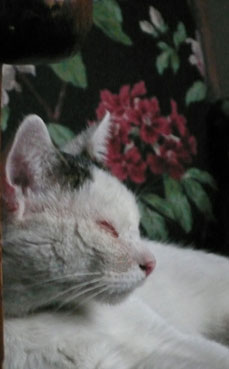 Dort muss eine Katze sein, den Karli empfängt. Denn er wurde dort gesehen. Aug in Augen, von der Tochter unserer Nachbarstochter. Und die kennt ihn gut.