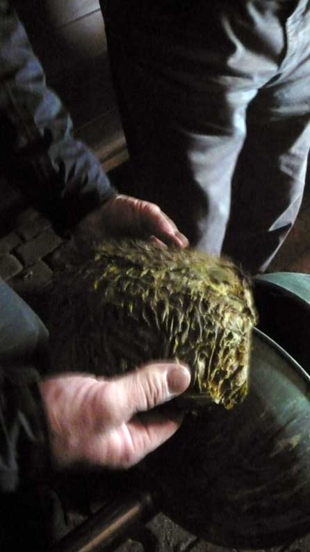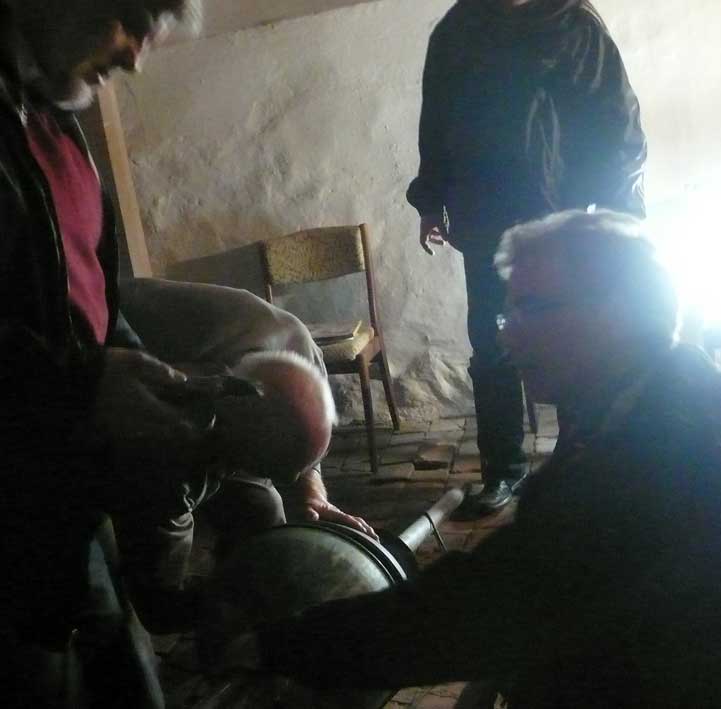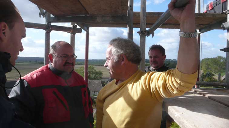 Das Öffnen der Kugel auf dem bisherigen Notdach.