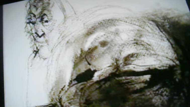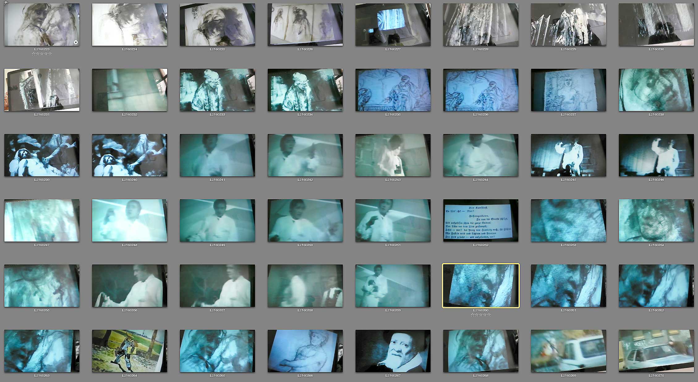 Dazu zeigen wir auch unter dem Titel Höhle der Erinnerungen, was auch schnell wir Hölle nennen könnten, Bilder der Wilhelmstrasse aktuell oder Szenen der BIbel solcher Art oder GoetheZeichnungen zum Faust