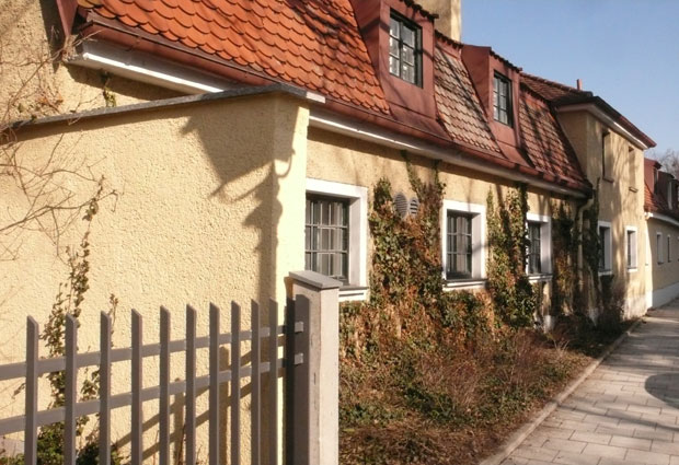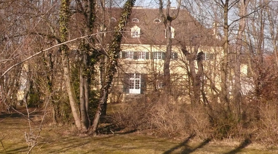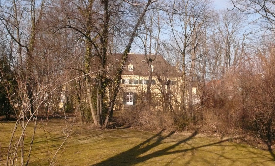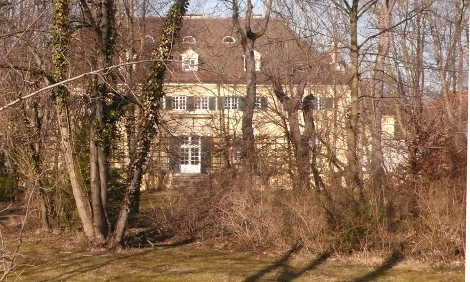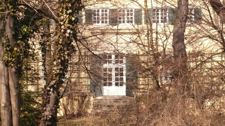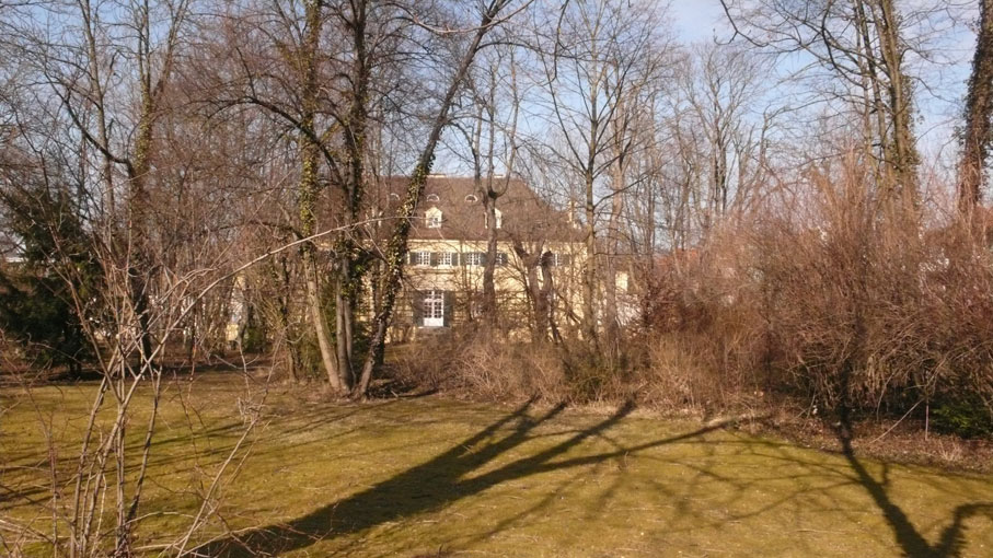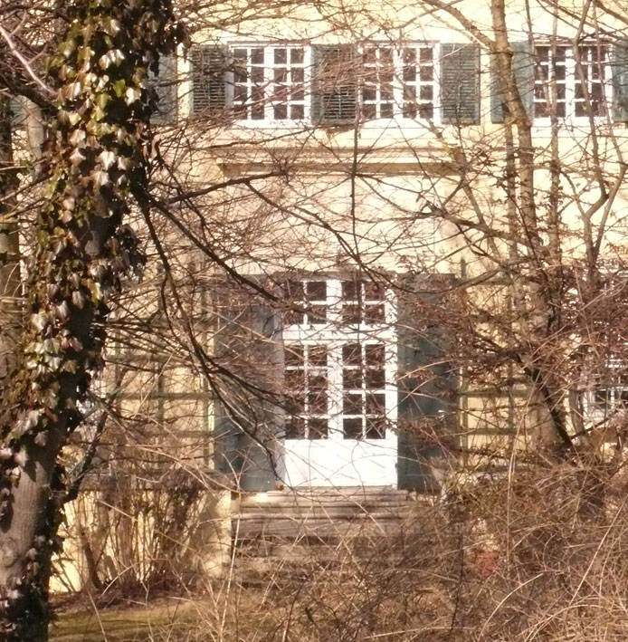 was blieb vom Schloss Biederstein, wenn man genau hinsieht, über Zäune in laubarmen Zeiten.