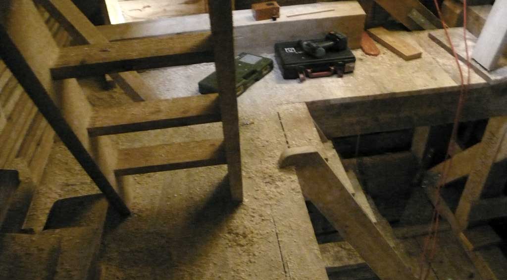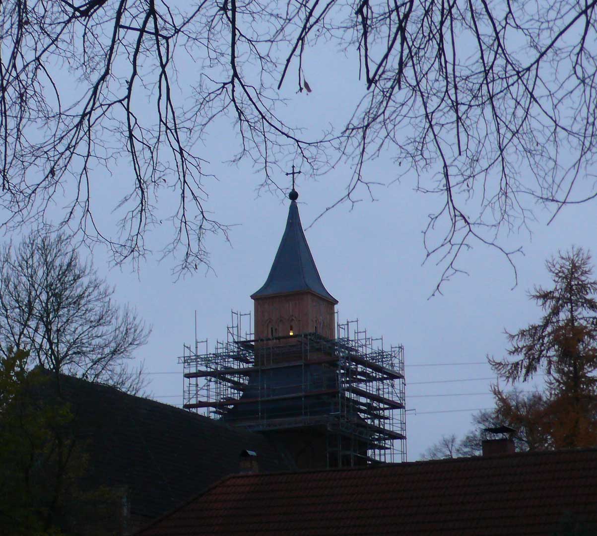 Nun kommen die Treppen des Innern im Sockel desTurms und die Vorbereitungen zu Einweihung am nächsten Sonntag