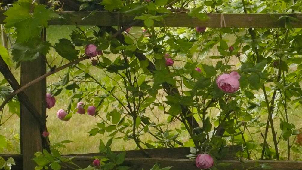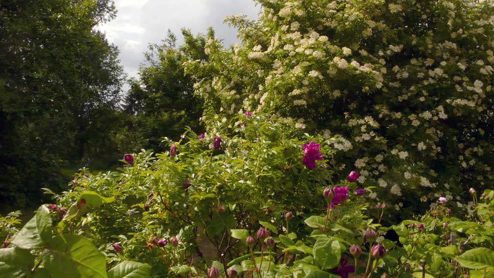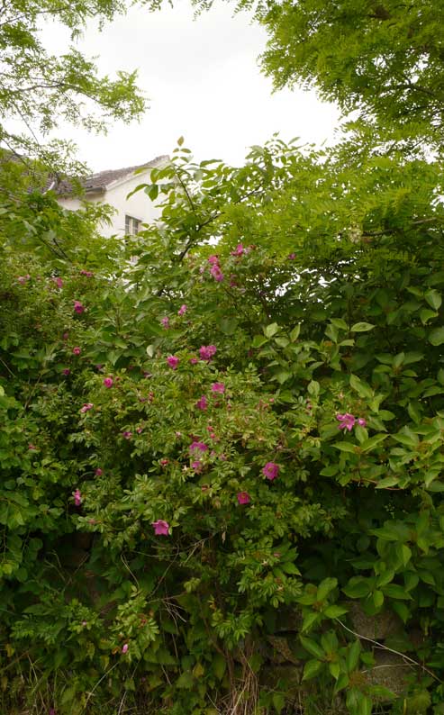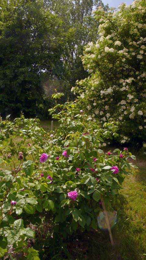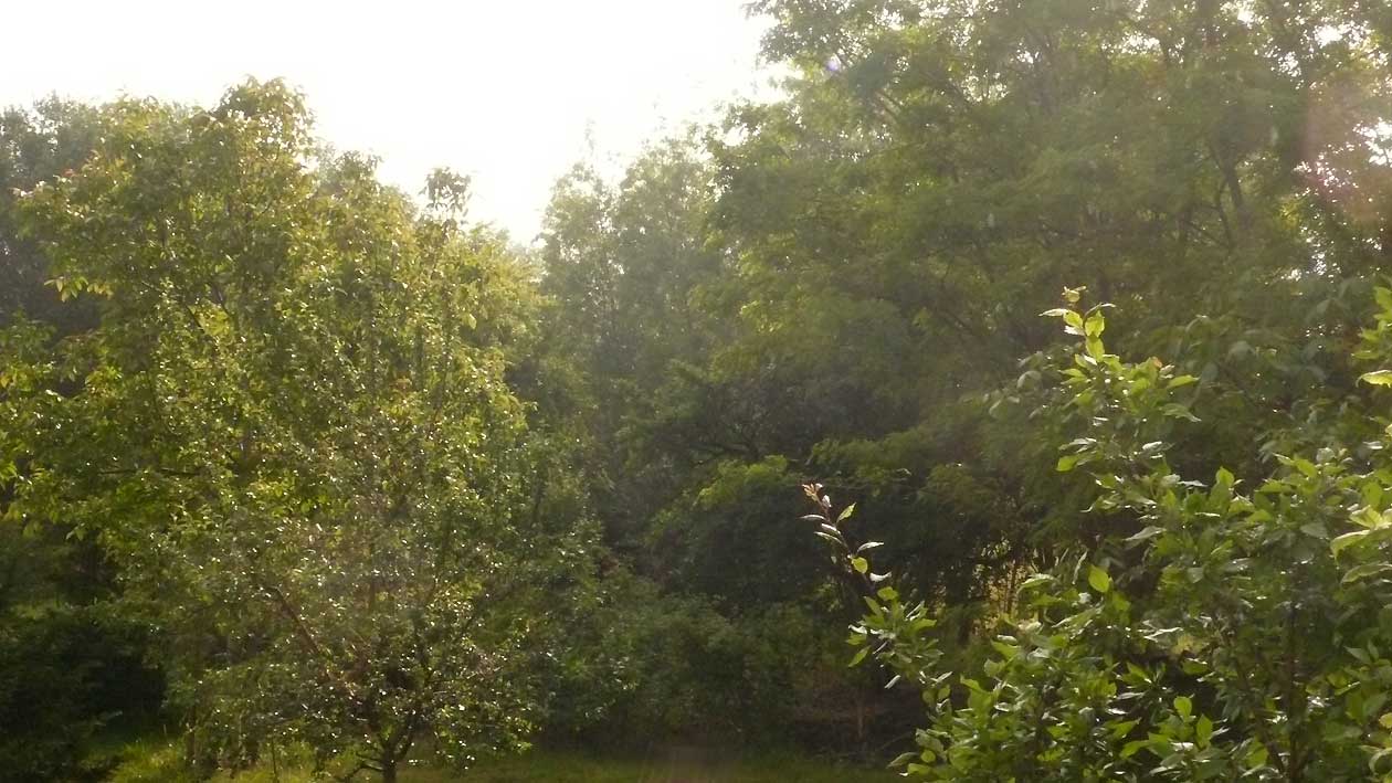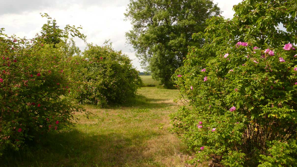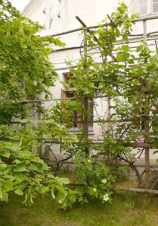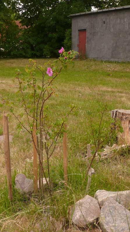 Der Blick vom mittaglichen Sitztplatz unter der neuen Linde vor dem Haus