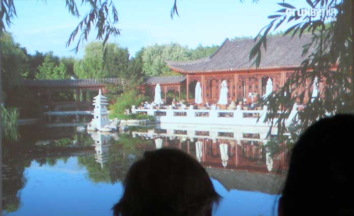 In Dalwitz an diesem Vormittag im Mai gab es auch einen Vortrag aus Berlin Marzahn über die dortigen Anlagen von Gärten der Nationen. Jedes Land in seiner Kultur. Seitdem ging die Kriminalität dort zurück und die Bewohner(350 000 in Plattenbauten der DDR) sprechen von diesen Gärten der anderen und der Welt als ihrem Park.