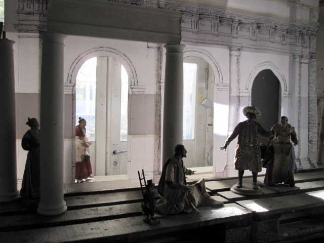 Von den Freunden zum Modell geworden zuletzt als Krippe im letzten Dezember und also für Nossendorf geeignet, aufzuführen was war alles verloren ging. Wie letztes Jahr der Weg zu den Gräbern, zur Kirche, dessen Turm wir jetzt wiederholen wollen.