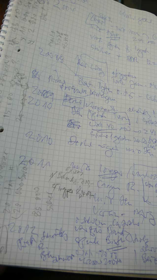 Während der Film-Zeiten durch diverse Produktionen mit öffentlichen Mitteln gegangen und des produktiven Gebrauchs seiner begleitenden Mitarbeiter in den Produktionen mit Sehnsucht gedenkend, des obersten Gesetzes des Produktionsteams alles Papierzeug dem Erfinder fernzuhalten, ihm immer zur Seite zu stehen, mit Antworten und Erfindungen, wie man durchkommt, dass der, ders erfindet, frei ist, frei von Wichtigtuereien des Apparats und erstickenden Details, für seine Dienste an allem. Dass der Gehorsam vor der kurzfristigen Statik nicht den Geist von Jahrhunderten verliert, wofür das alles gut ist, wenn wir es wollen.