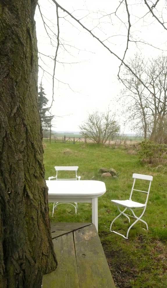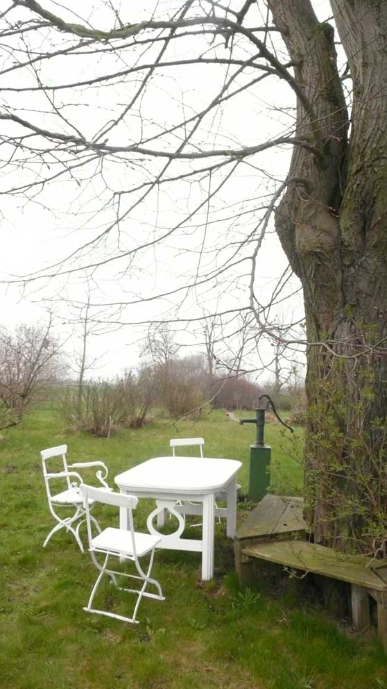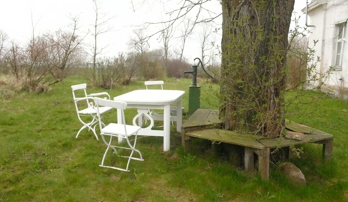 Für den Sommerteil des Jahres eingerichtet wieder der Tisch unter der Linde vor dem Haus.