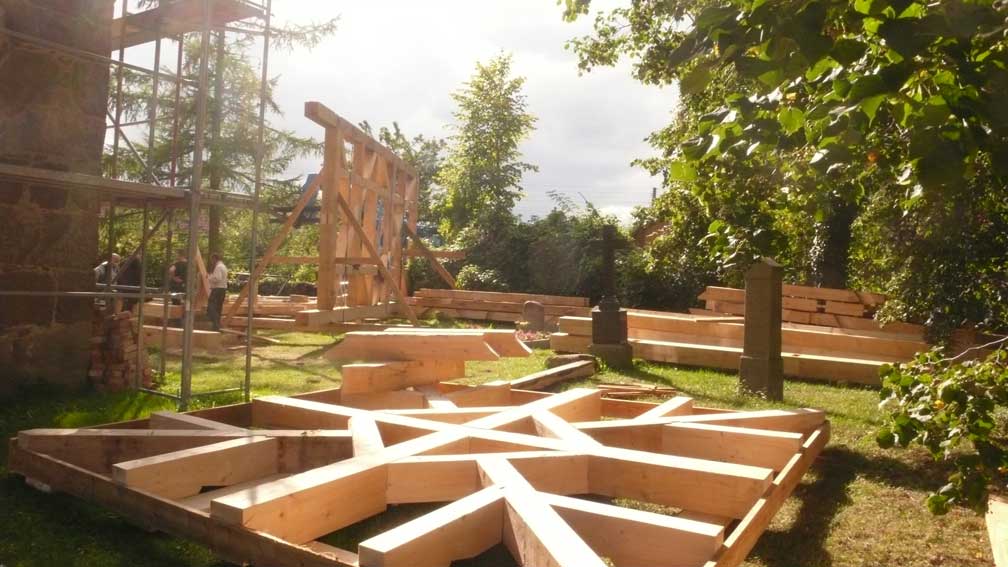 Nun gehts am Fusse der alten Kirche weiter, alles wiederzusammensetzen, Stück um Stück.