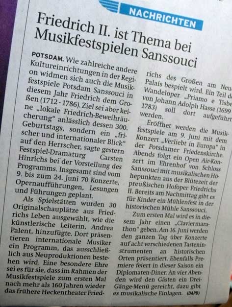 Ein König der Kriege und die Musik und Schlösser zugleich? was für eine Chance darüber nachzudenken.