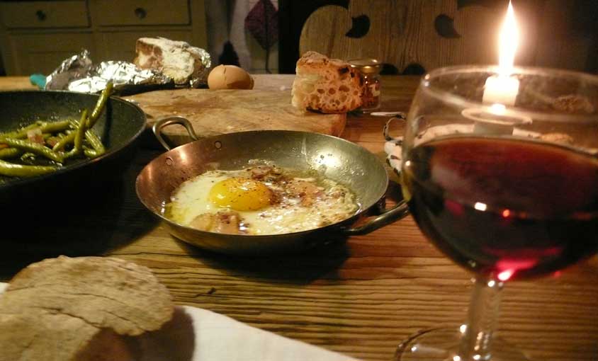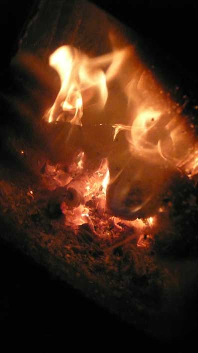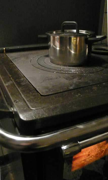 und ein Herd wieder mit Feuer an dem gekocht wird, behutsam, aber warm.