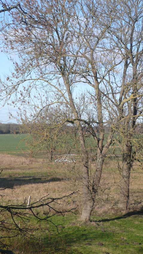 und die Brücke ins Land, bis an den Wald, hinter dem die Positionslampen der Windmülen von heute nachts flackern.