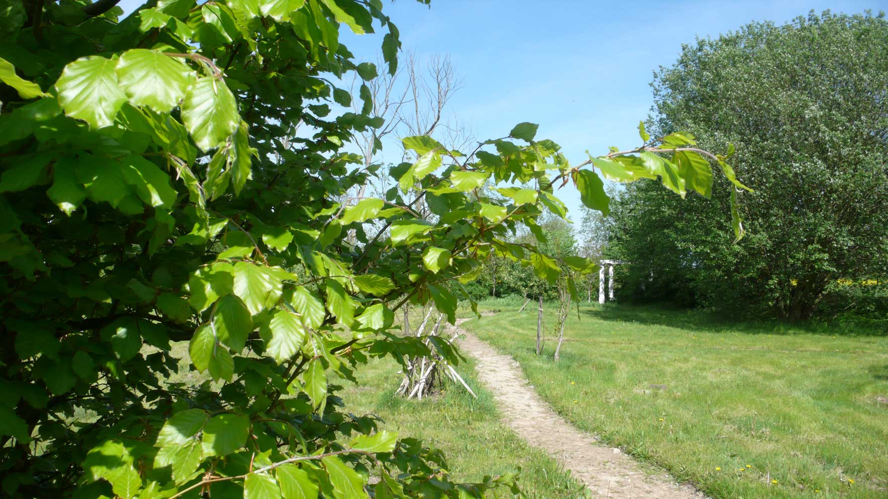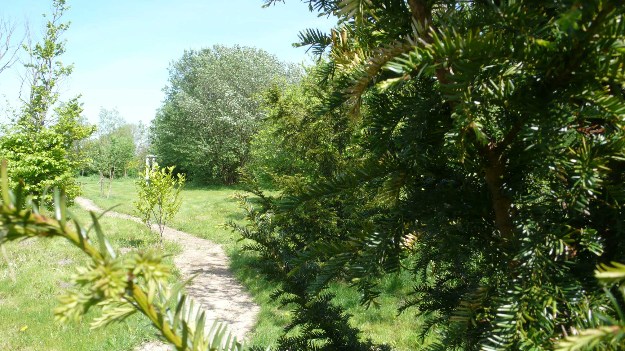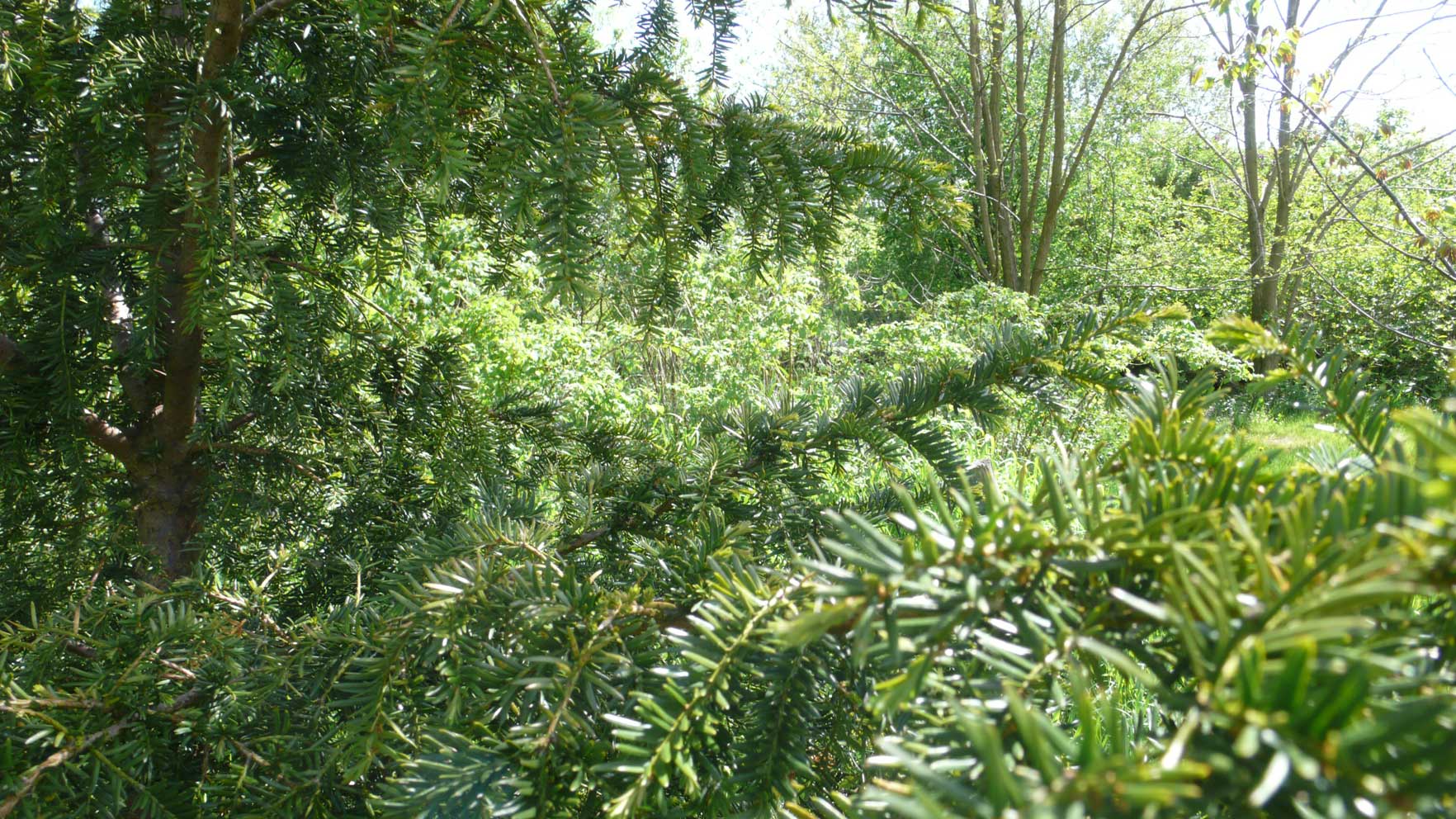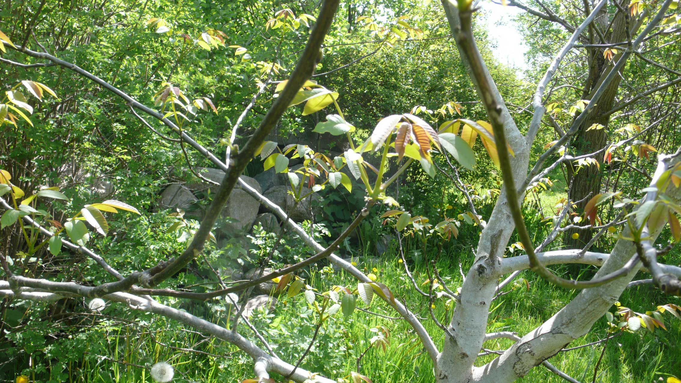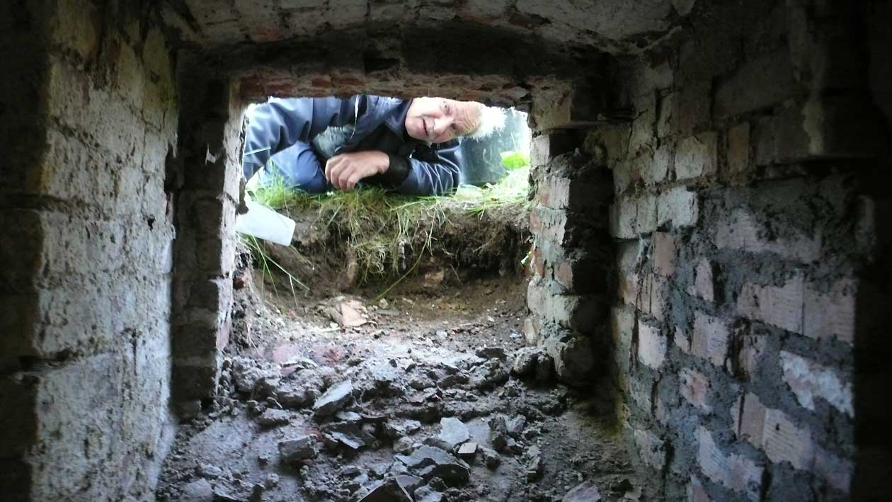 Zum Keller im Norden, wo früher die Kartoffeln und Wrucken und dergleichen für den Winter herabgescüttet wurden. Dann Einstieg für die Kinder, als das Haus zugemauert war. Jetzt mit Stäben und offen für die Luft zum zirkulieren.