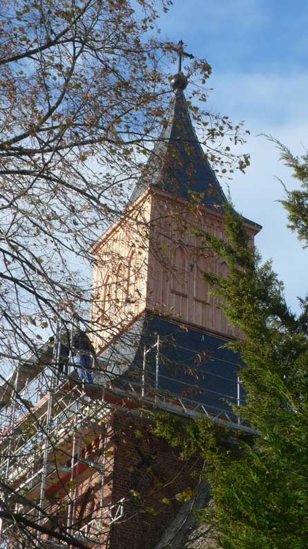 schon zeigt sich der Turm in seiner neuen Gestalt nun ohne Gerüste wie ein Wunder wieder da