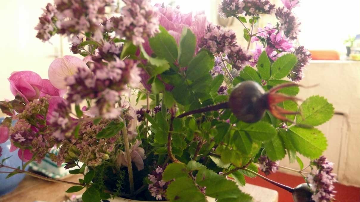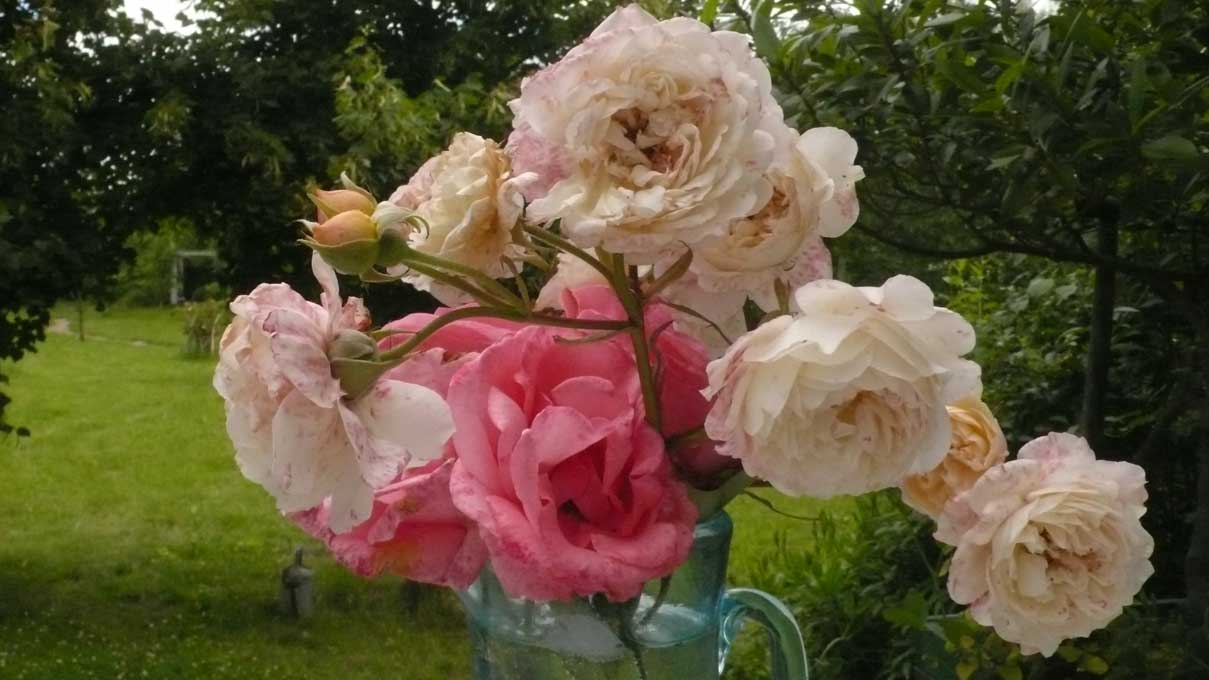 Nun werden die Rosen schütter und alles grün. Im satten Regen-Sommer dem August entgegen.