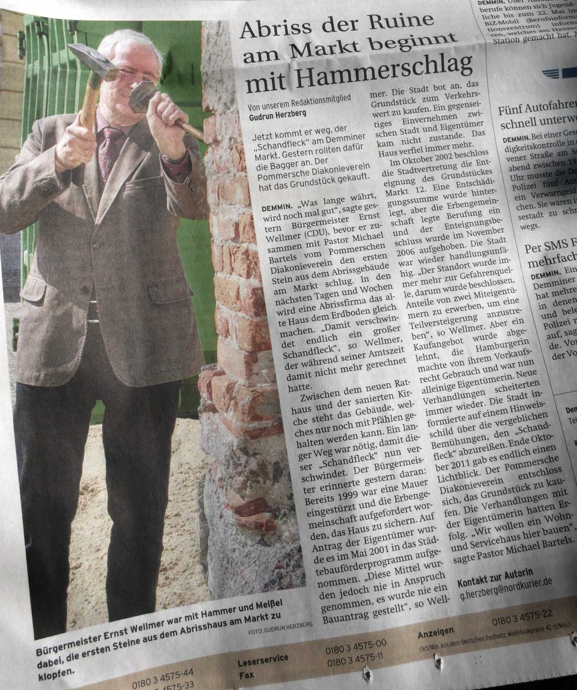 Viele gemeinsame Schlachten geschlagen, nun tritt er ab als Bürgermeister von Demmin. Nicht ohne sein liebstes Promblem-Haus schnell noch zu entsorgen.