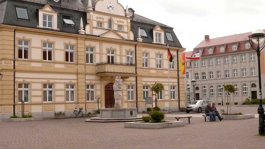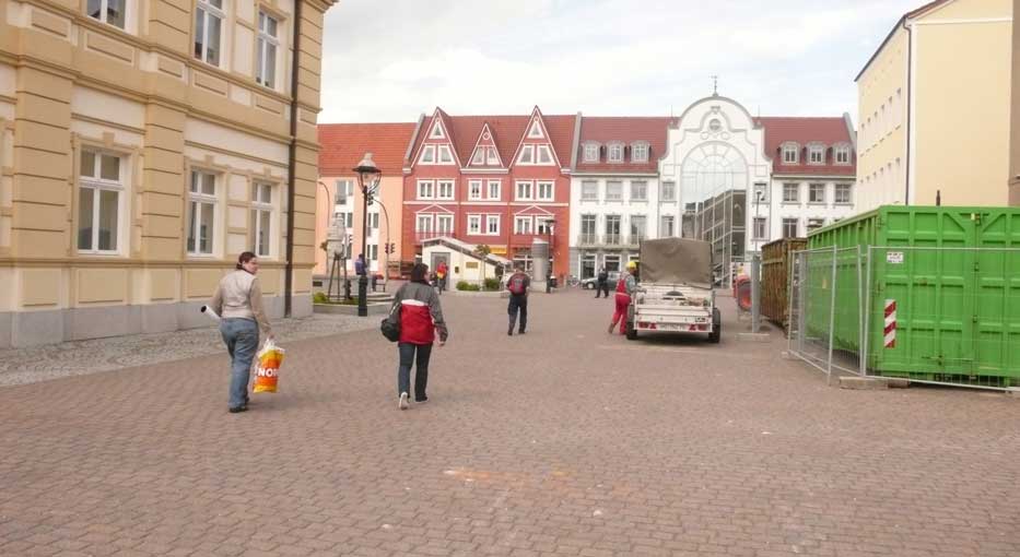 Demmin, Markt neuem Rathaus wieder(aussen)mit neuer Nord-Seite des Marktes