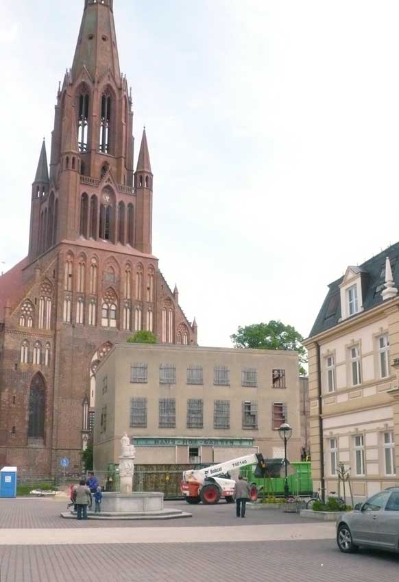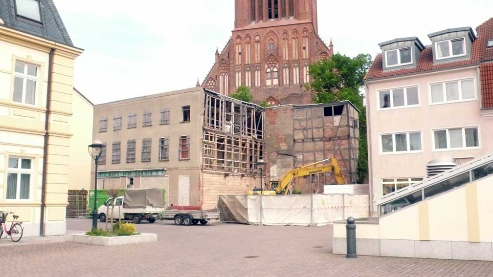 Noch erhalten die Südseite des Marktes in Teilen, wie sieses Haus auf allen historischen Billdern immer als Kubus zwischen Markt und Kirche mit kubischen Fenstern. Und soll nun weg. Alles offen dann, was der Krieg noch liess.