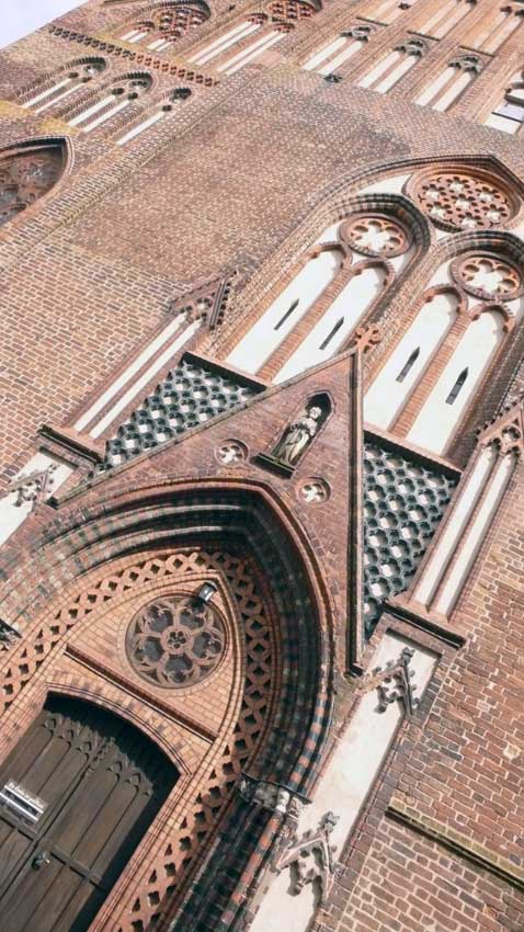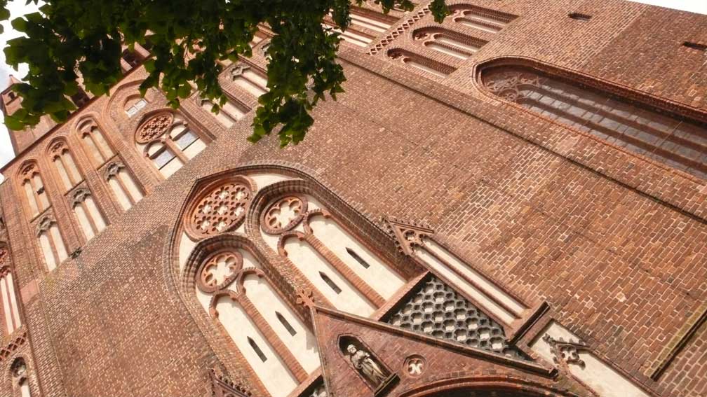 gegenüber in guter Nachbarschaft die Fassade der Kirche