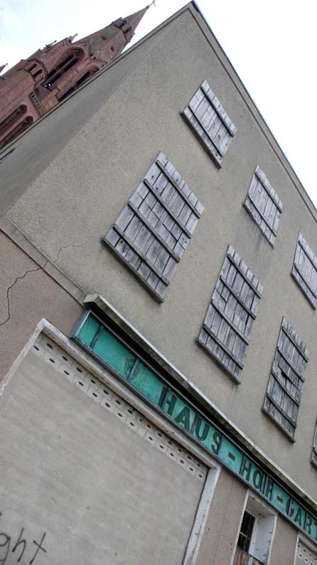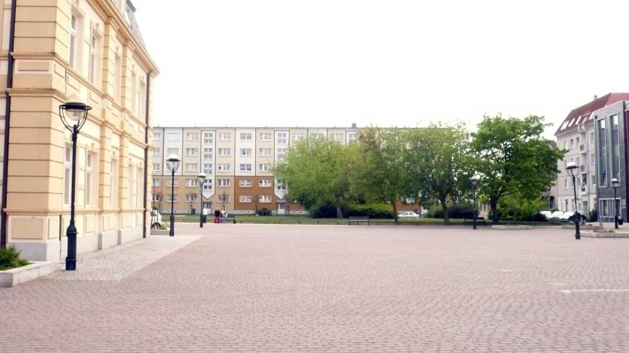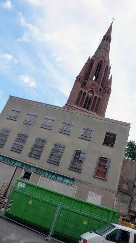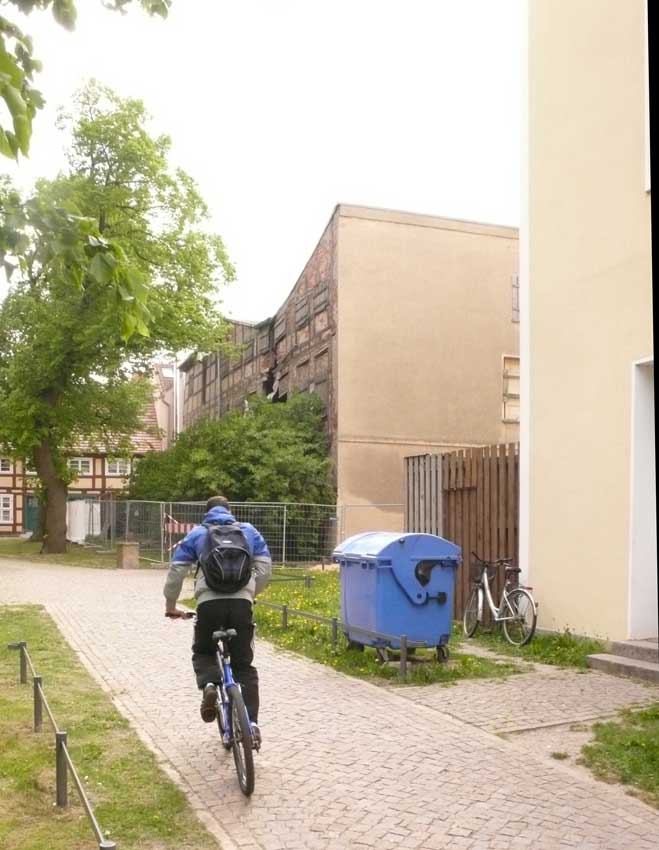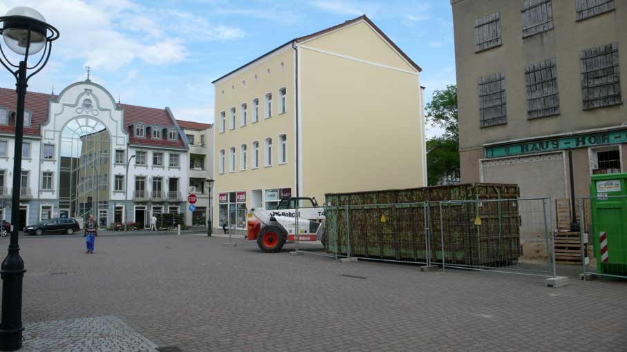 nach dem Muster der Funktionärsbauten in der berliner Wilhemstrasse an der ehemaliegn Mauer, noch im Wendejahr schnell aufgezogen alles Alte weg, was noch stand, entsorgt, wie das Haus an der Marktstrasse jetzt, das gerade noch steht.