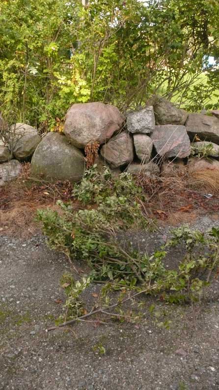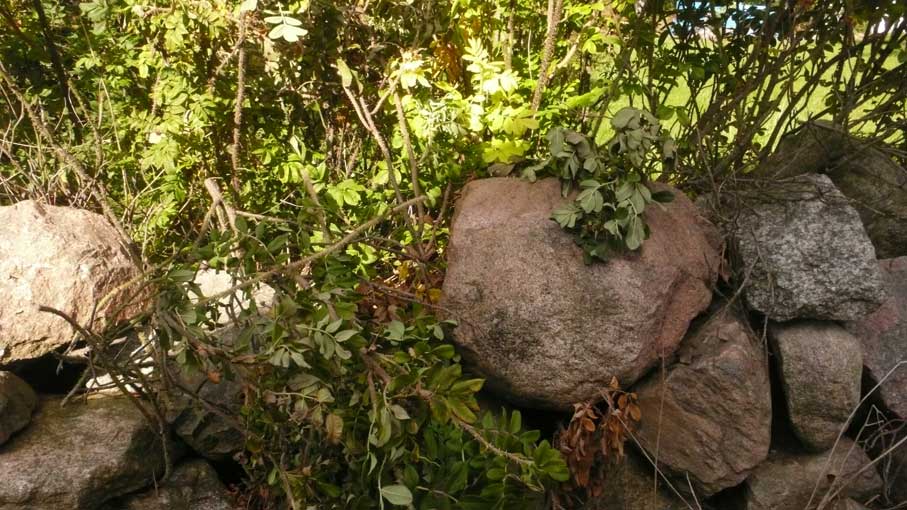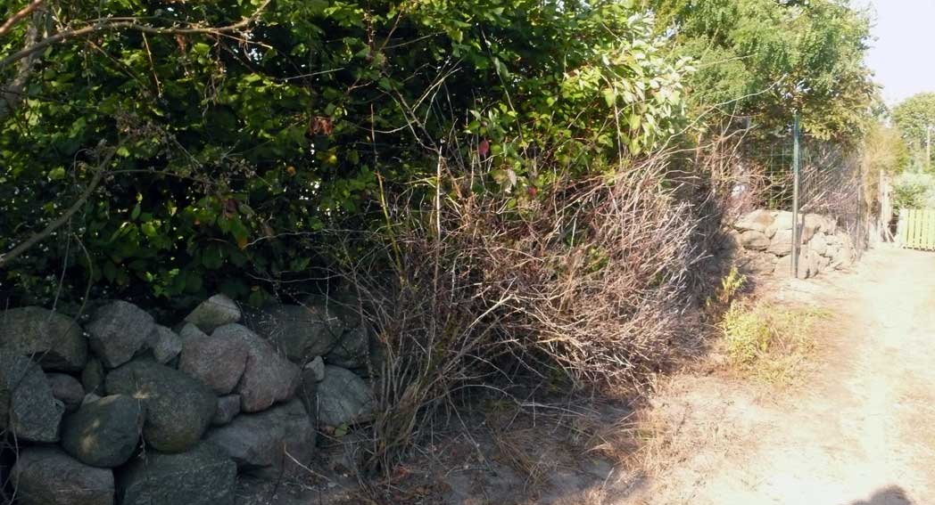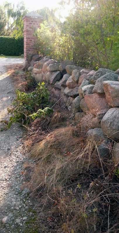 als wir diese abgrenzende Mauer setzten, zogen wir sie so ein, dass sie einen freundlichen Grünstreifen auf dem benachbarten Weg freiliess. Der sieht nun so aus.