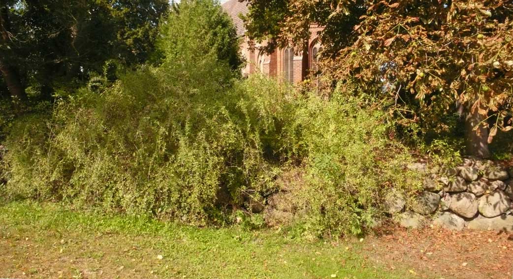 durch vermintes Gelände, wo bis vor kurzem noch eine alte Mauer des Friedhofs Würde bewahrte nun Kahlschlag, obwohl unter Denkmalschutz wie das ganze Objekt. So zeigt sich auch hier, warum man solche Nachbarn besser fernhält mit gehörigem Abstand und schon gar nicht durch Verkäufe öffentlichen Guts anlockt zu eigenen Aktivitäten, wo immer es möglich ist und Verantwortung noch gilt.