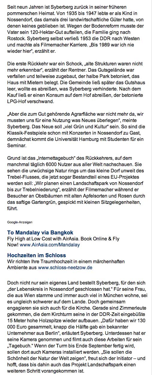 jetzt in Nossendorf der Turm redivivus, was ist dagegen die documenta von der die Zeitung auch hier mit Zahlen einen Erfolg der Werbung misst.