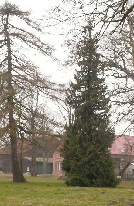 Und wie ein Baum nach der Natur aussieht. Im Paek von Medrow Mass genommen, gleich um die Ecke. Das Schloss ist eine Ruine, aber den Park werden wir vielleicht noch retten in seiner Würde.