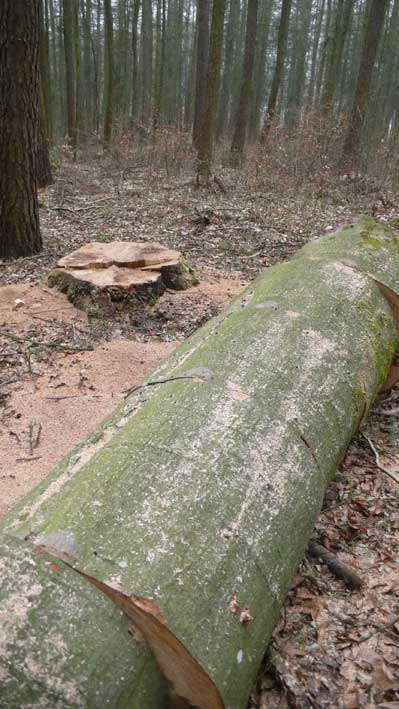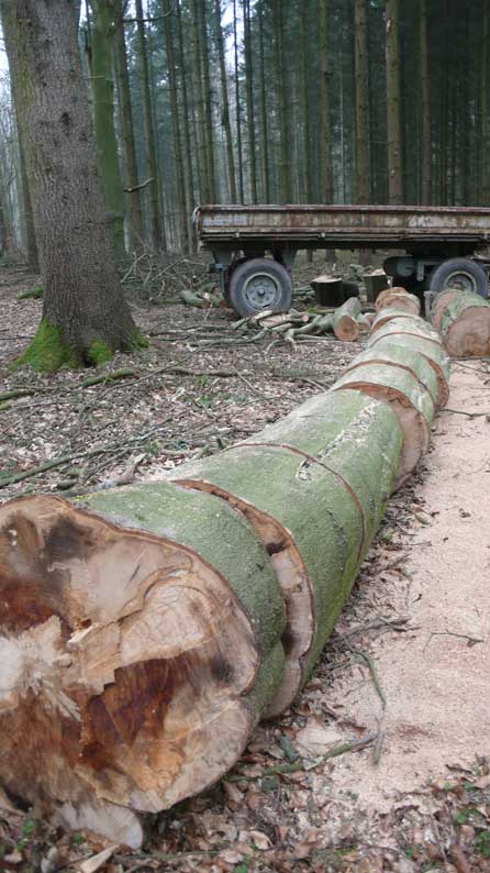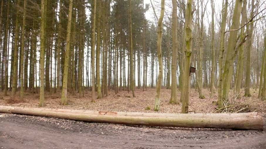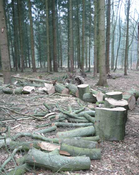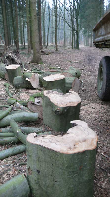 Und dann noch mal der Wald. Die gestorbene Buche zwischen den Tannen erdrückt für uns. Die Öfen werdens danken.