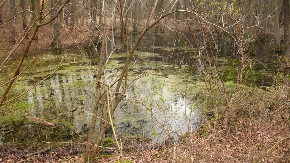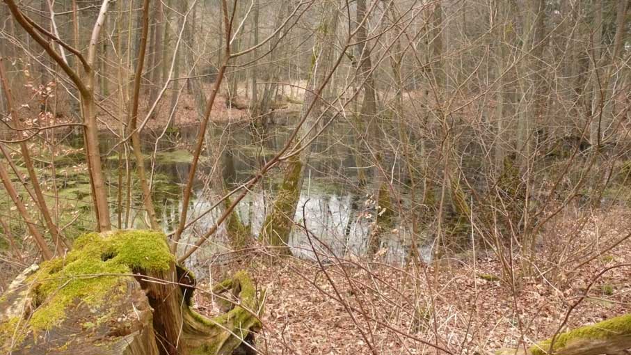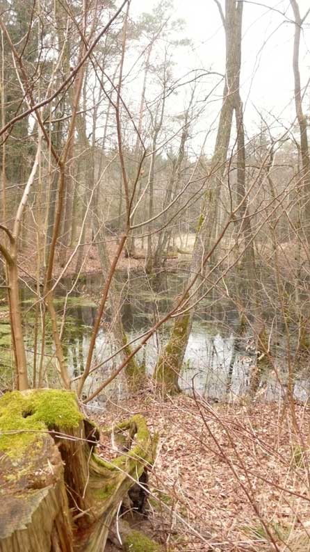Noch lässt das fehlende Grün der Zweige die Blick frei für das diunkle Augen des Waldes wenn er ruht.