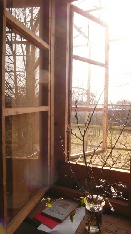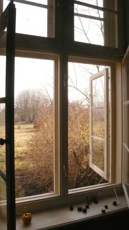 Und offen die Fenster wieder und überhaupt das befreite Haus mit zu öffnenden Fenstern und Türen.