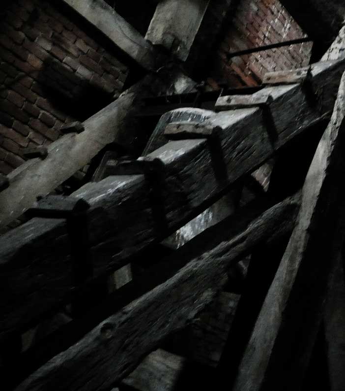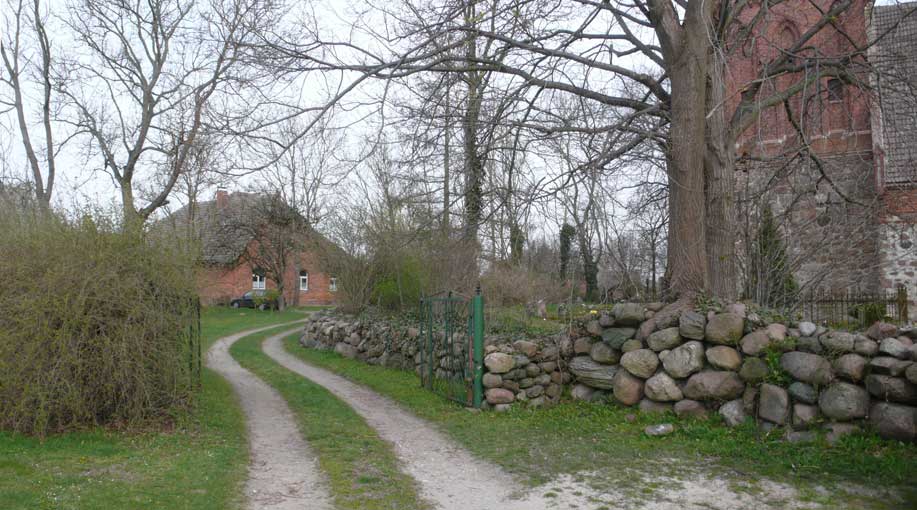 Zufahrt für den Kran zwischen alter Schule und Eingang zum Friedhof.