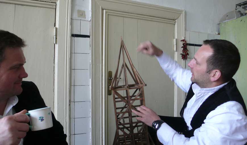 In der Halle könnten die kleineren Teile unanghängig vom Wettter bearbeitet werden. Vor dem Prospekt des Berliner Schlosses der richtige Platz(Parole-Saal von Erdmannsdorff)