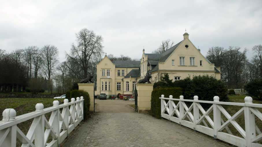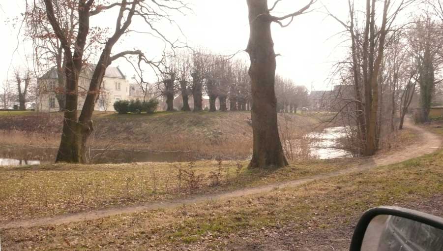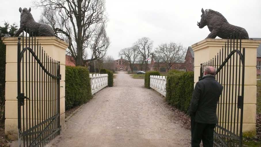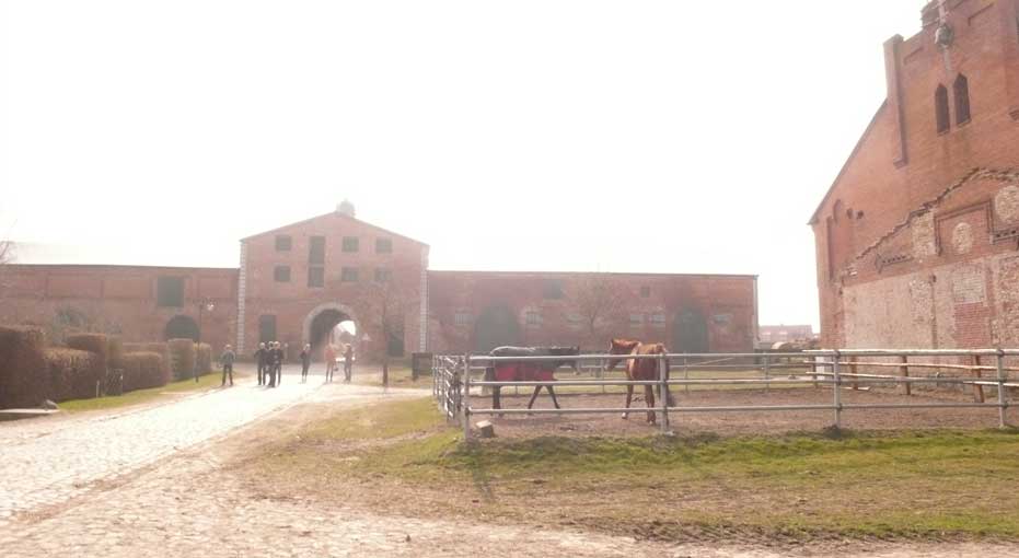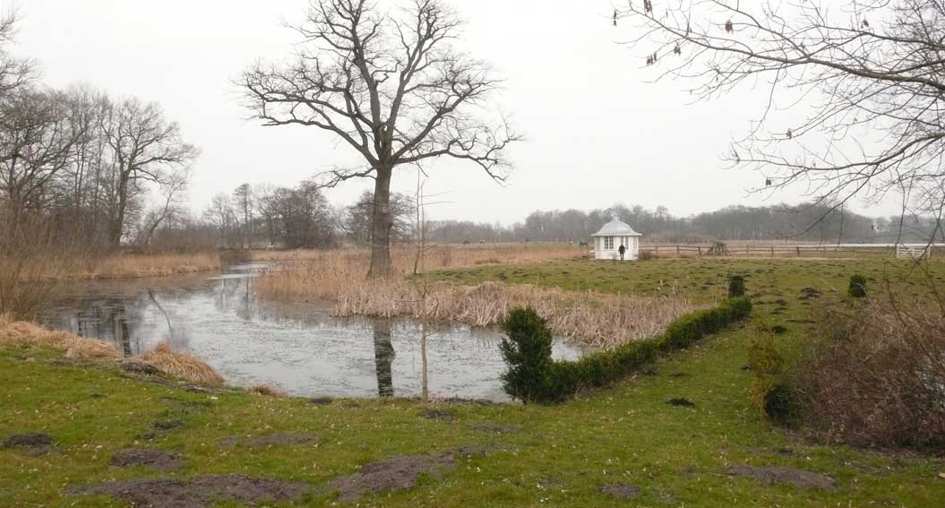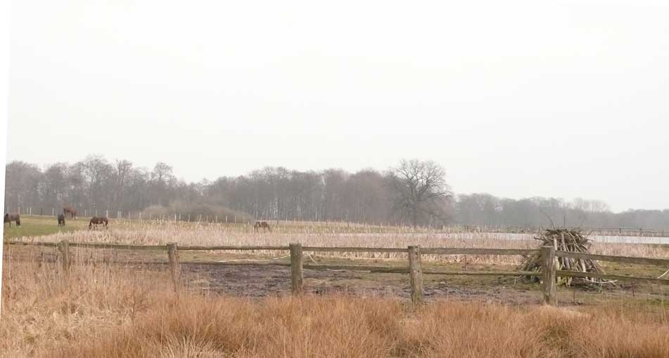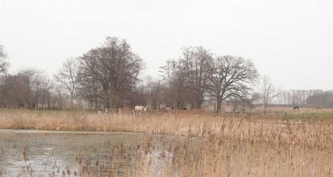 Das Land des ehemaligen Parks mit Sichtachsen Tempel- Brunnen-Achsen und historisch besetzter alegorischer Figuren und begrenzter oder geöffneter Enklaven geht über in das Land der Pferde und offener Bewirtscaftung aller Menschen und Tiere und sorgsam überlegter Fahrzeuge..