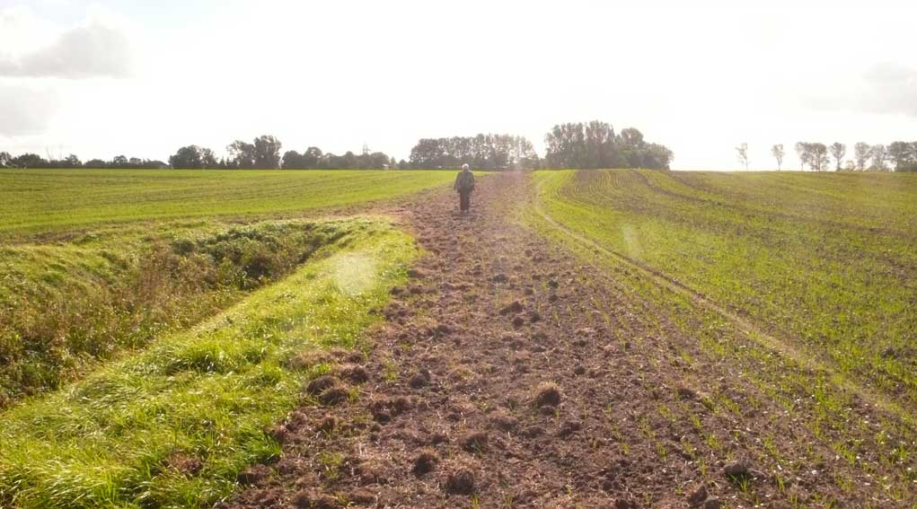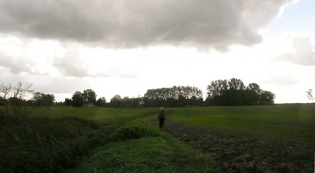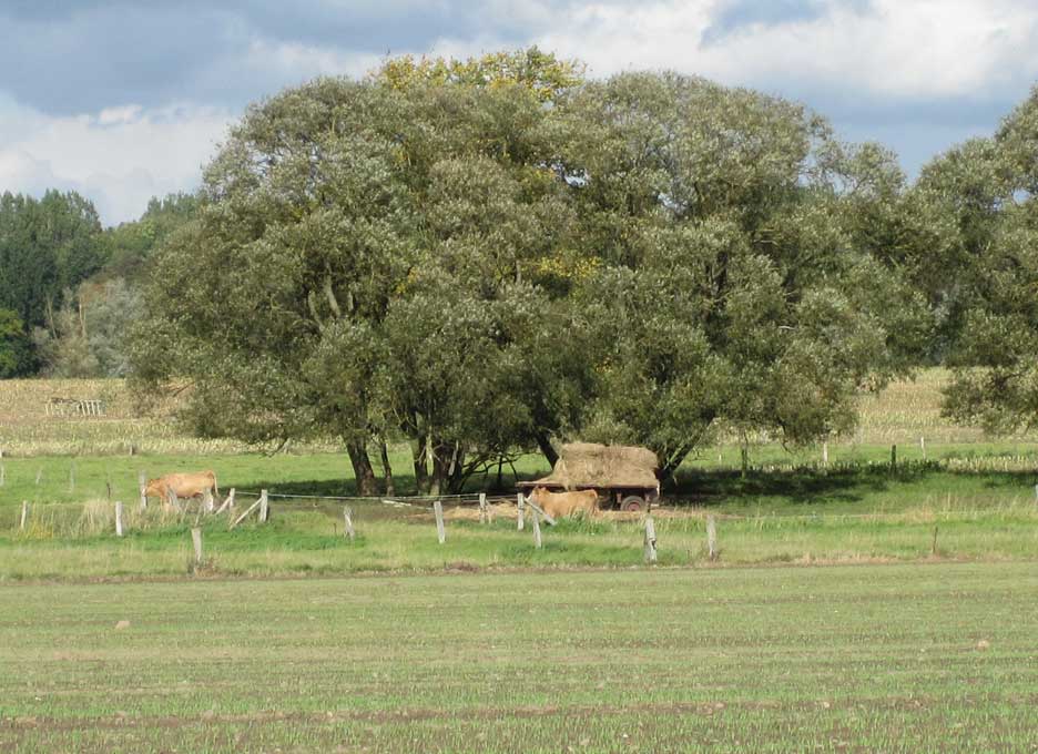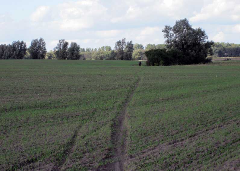 wir sehen an der alten Struktur im Land wo der Weg wieder hin muss. Am sogen. Unland der Ränder wird er wieder aufgenommen. Die Weide in der Mitte ein Solität mit urtümlicher Würde wurde den verstümmelten Allen -auch iohnen Verker hier- gemäss zum Krüppel.