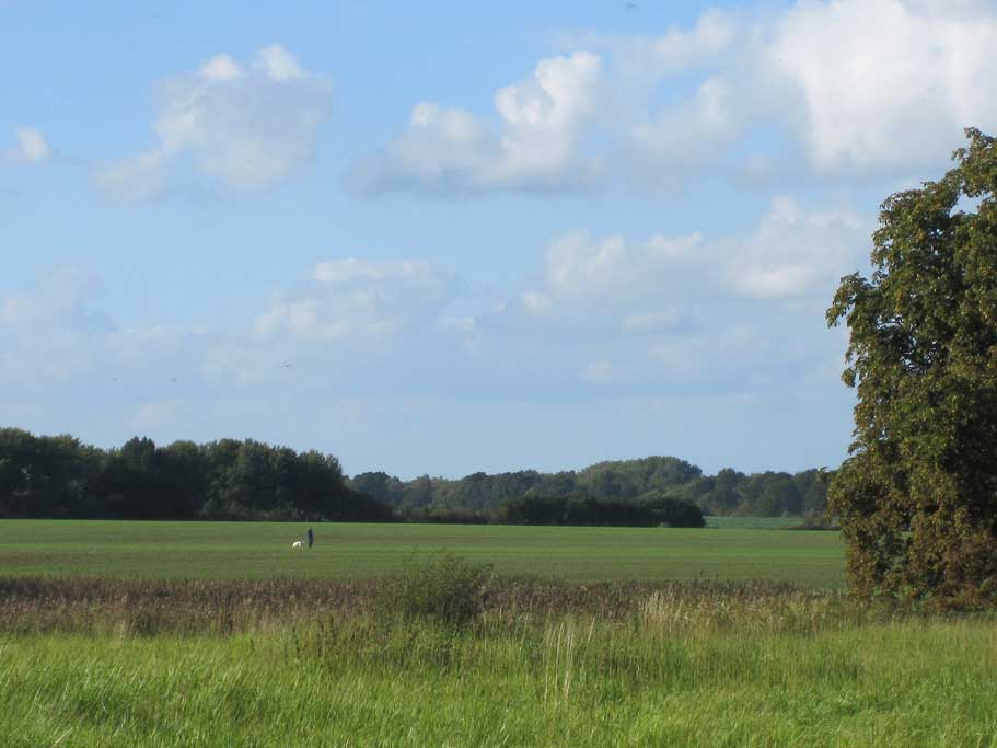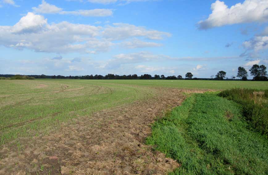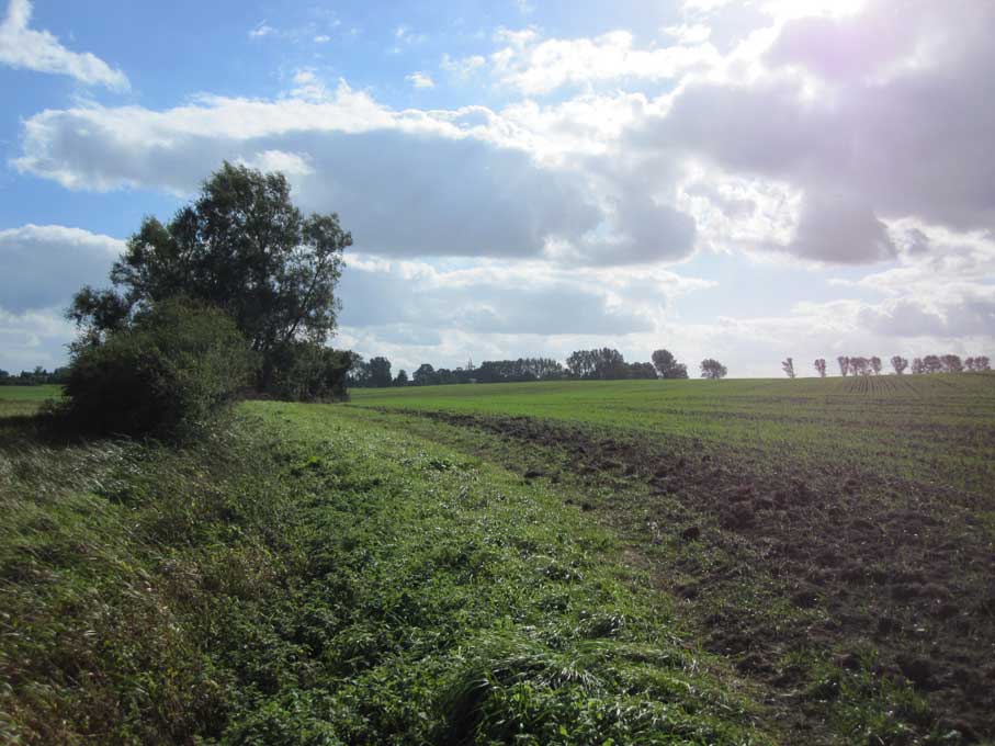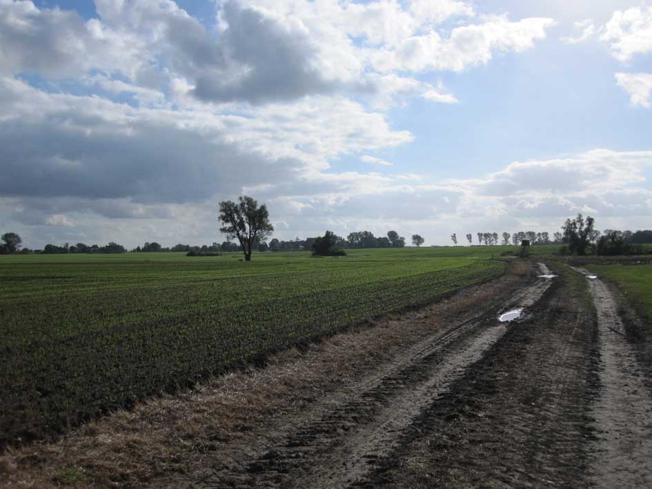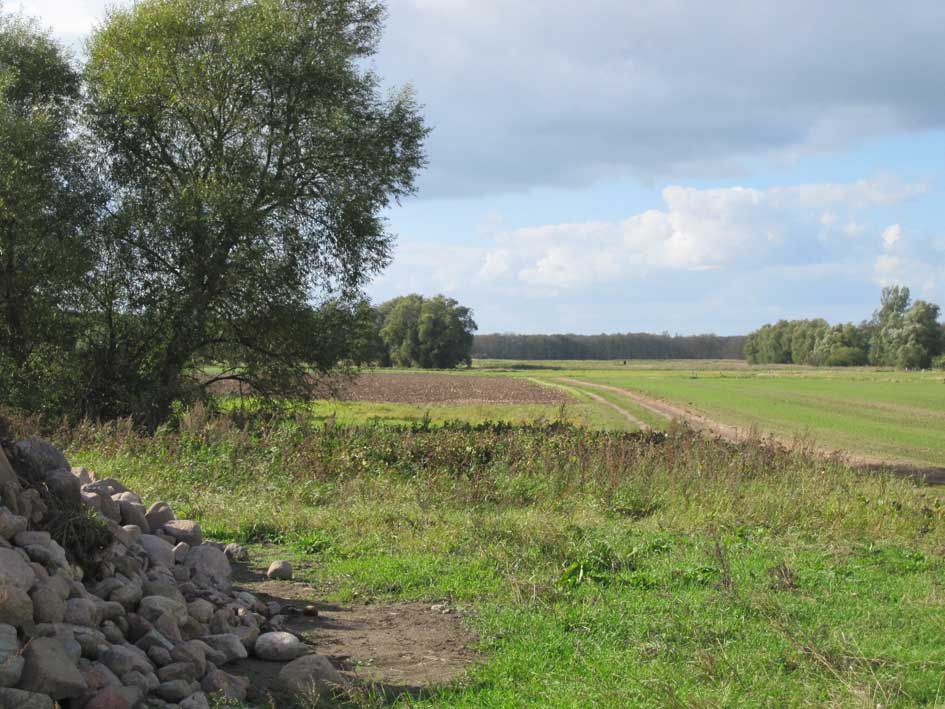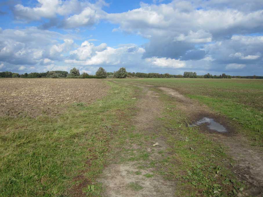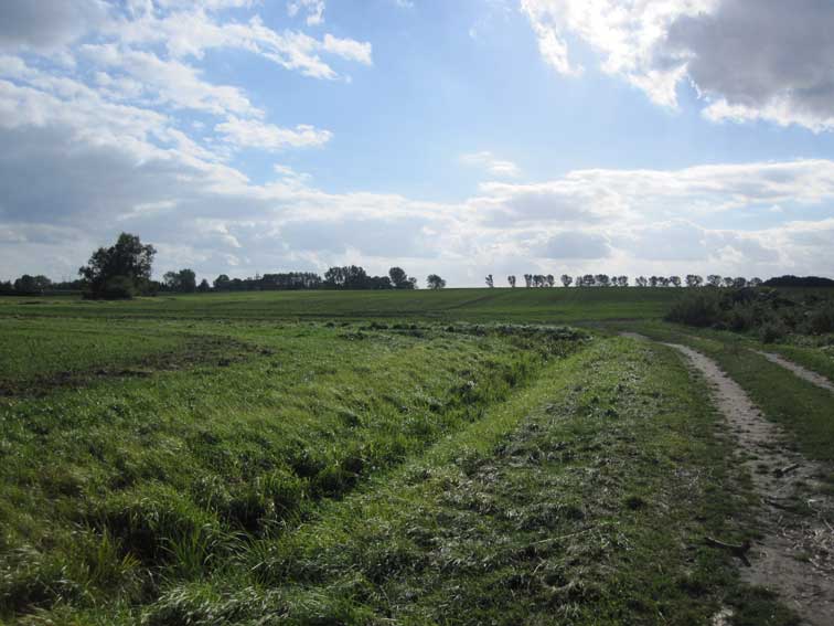 Die Strasse von Nossendorf nach Volksdorf zeigt am Horizant aus der Ferne den gleichen Raubbau, indem man die Bäume der Pappelallee versucht langsam auszudünnen.
