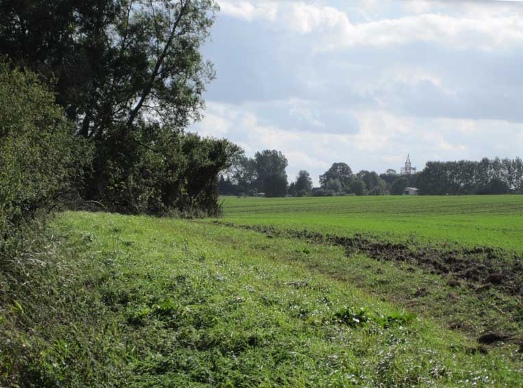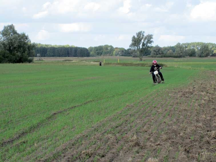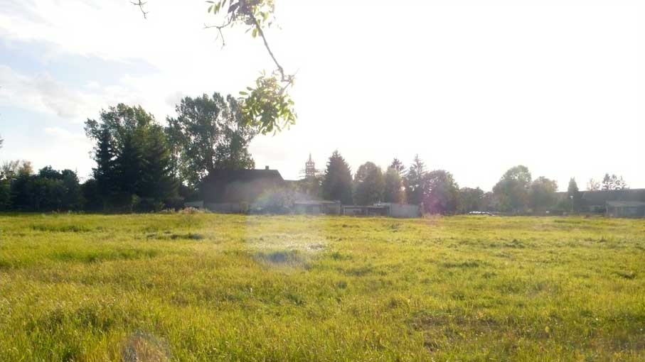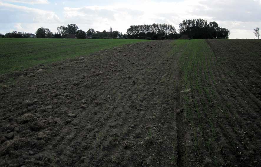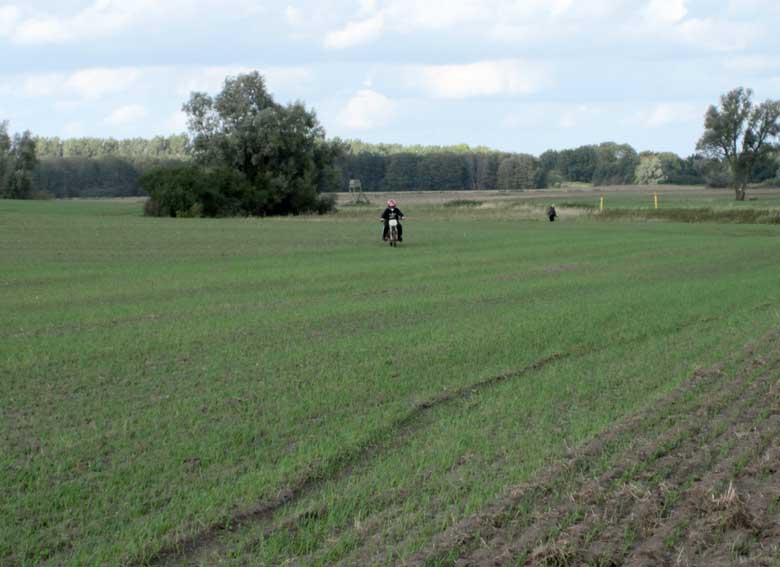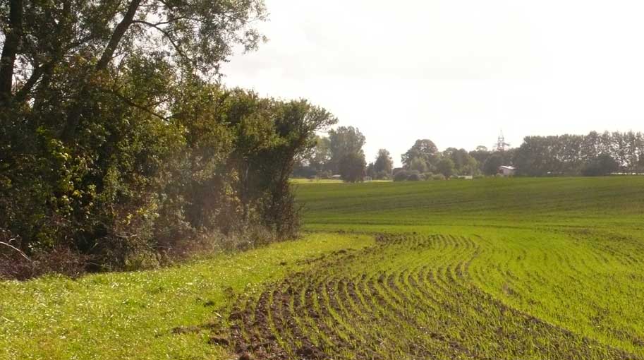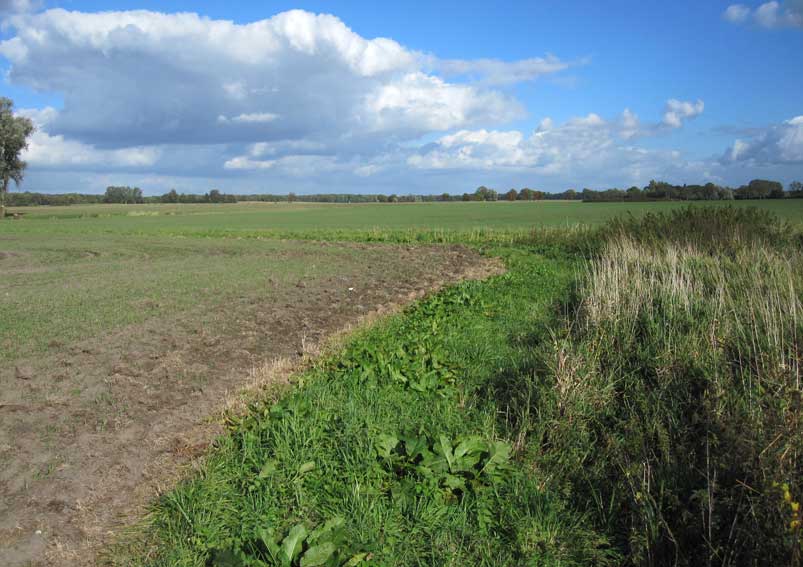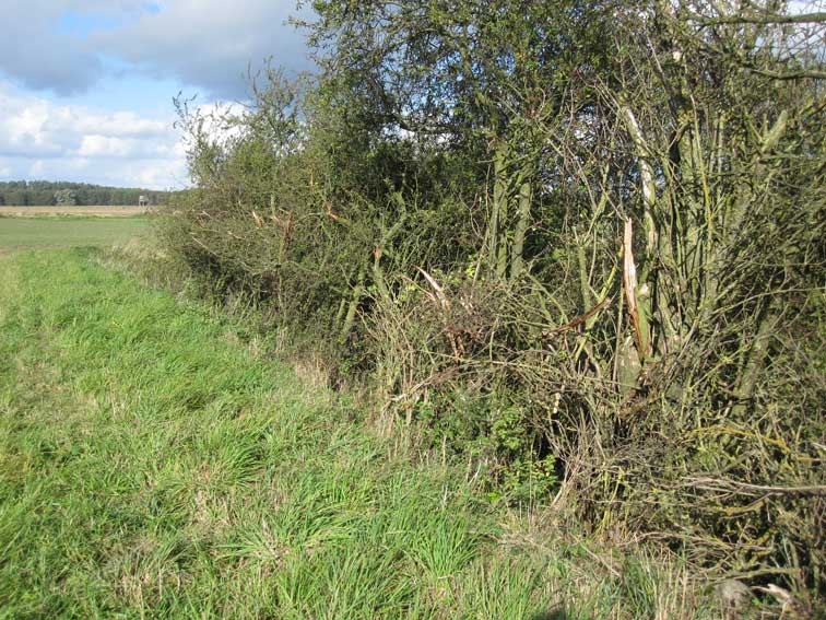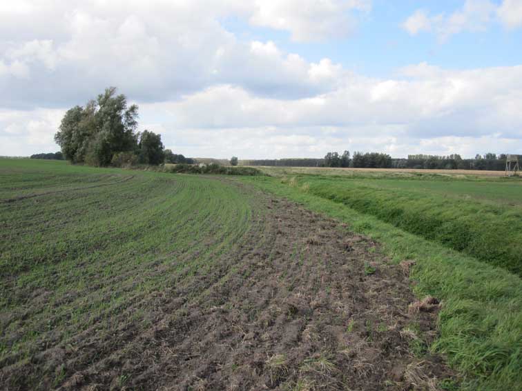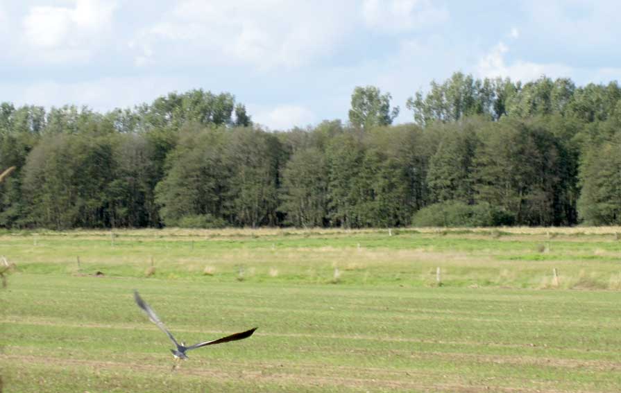 Die Strasse von Nossendorf nach Volksdorf zeigt am Horizant aus der Ferne den gleichen Raubbau, indem man die Bäume der Pappelallee versucht langsam auszudünnen.