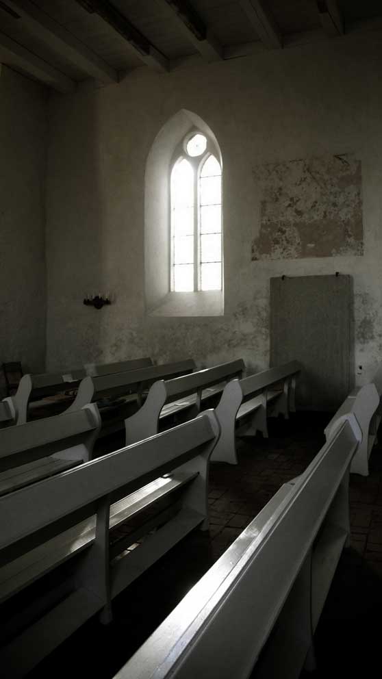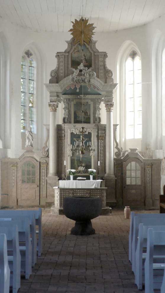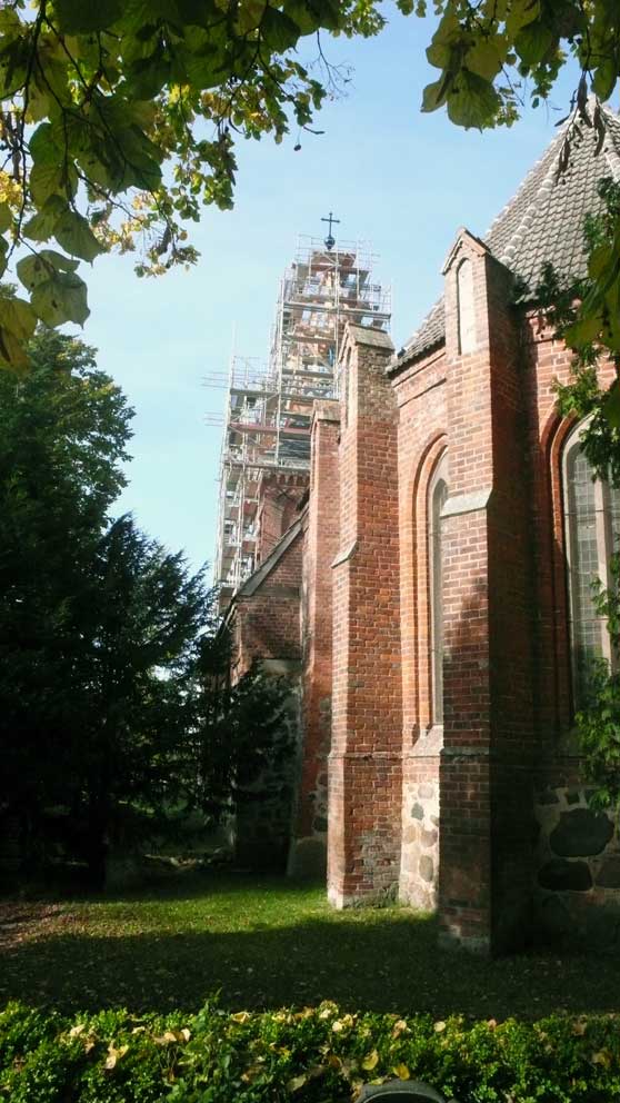 Der Chor ist nun wieder da und das Langschiff mit Decke, eine neue Glocke, und der Sockel des Turms aussen und innen zum Turm. Die Orgel und eine Heizung sind in Planung und Arbeit.