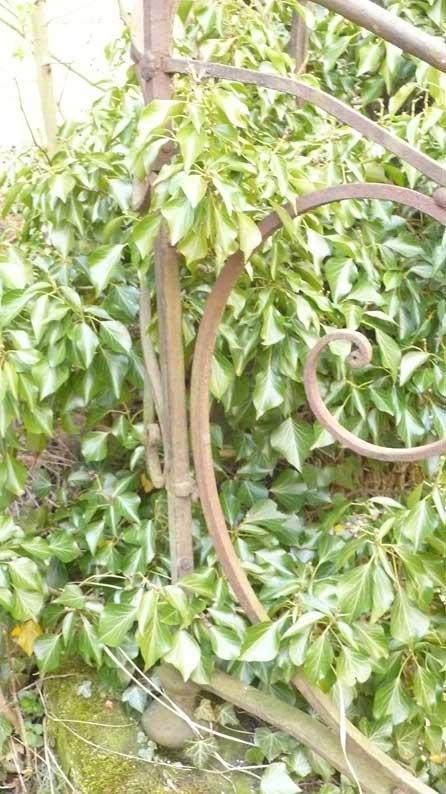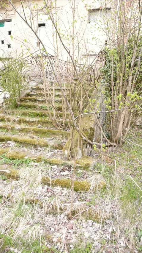 Aber schon hinter dem sauber betonierten Haus die alten Bäume noch mit den Wiesen mit Hütten der anderen Welten. Wo wir herkommen.