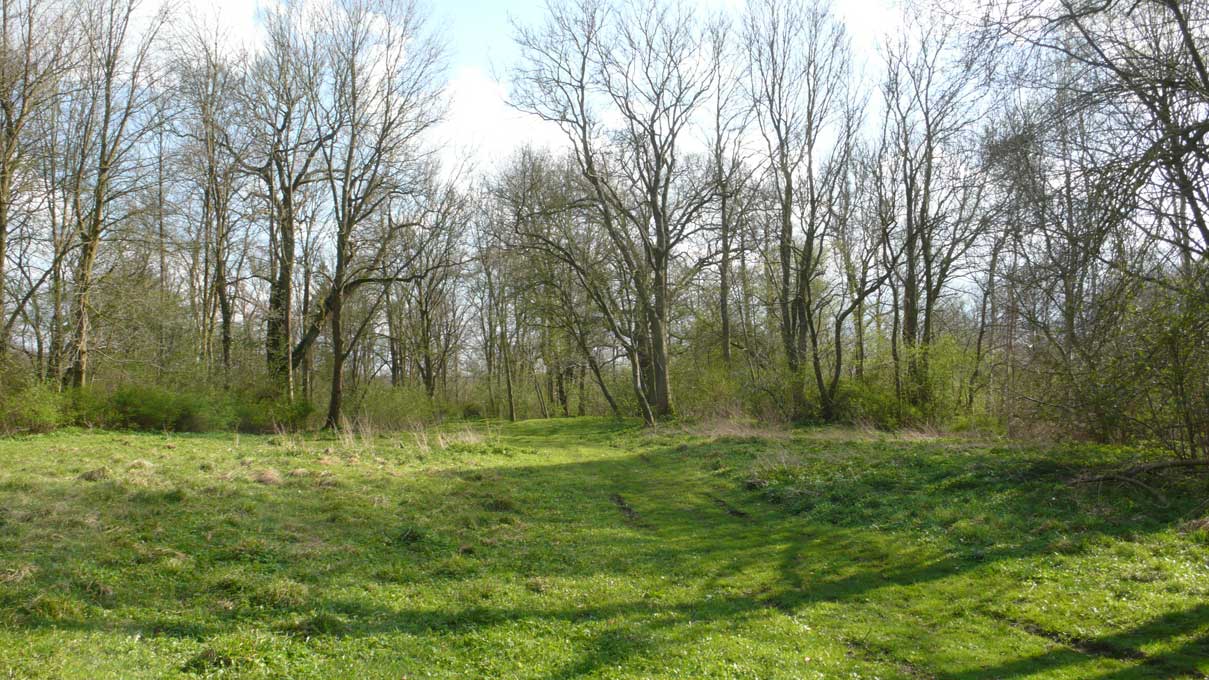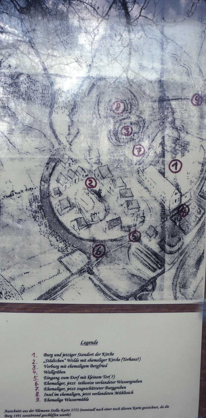 was von den alten Anlagen noch üb rig ist. Wälle und Gräben und Anger mit gütigen Alleen.