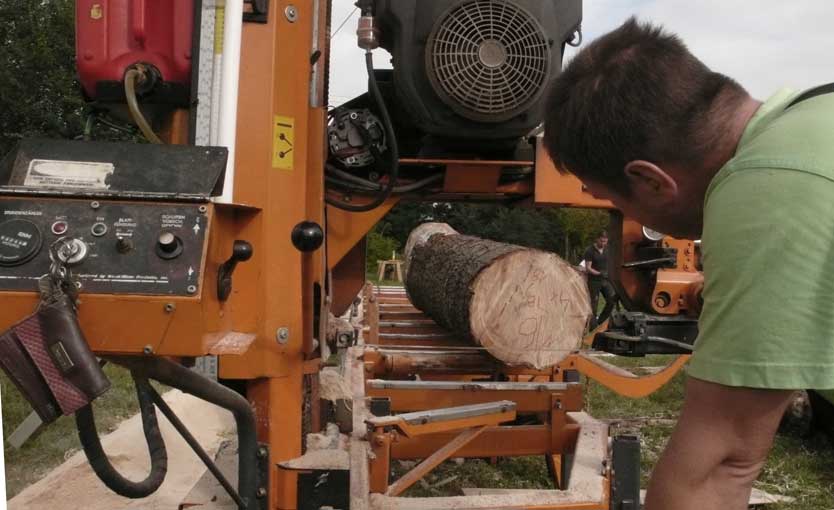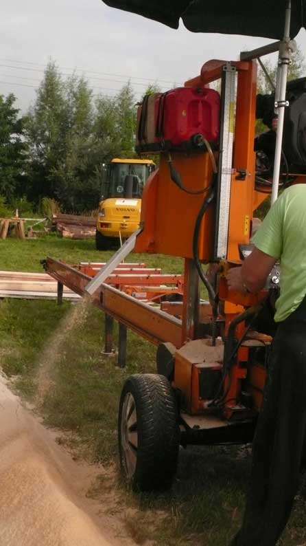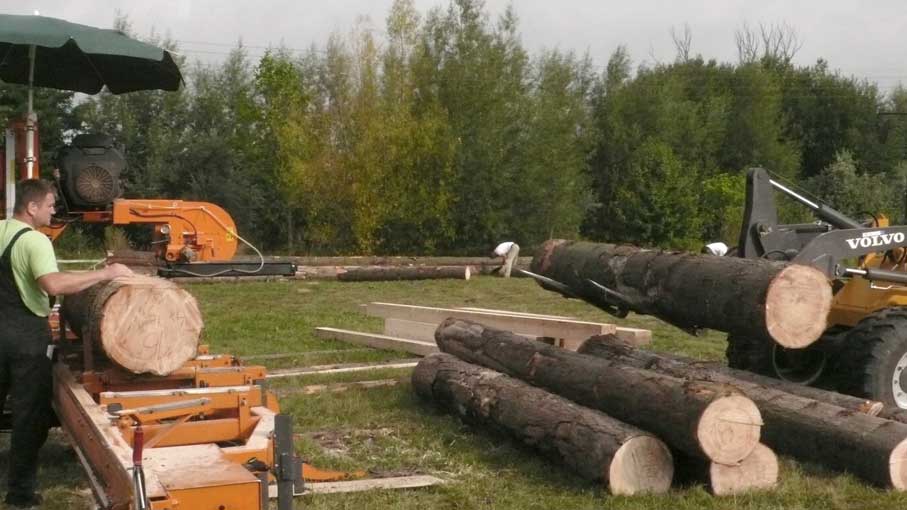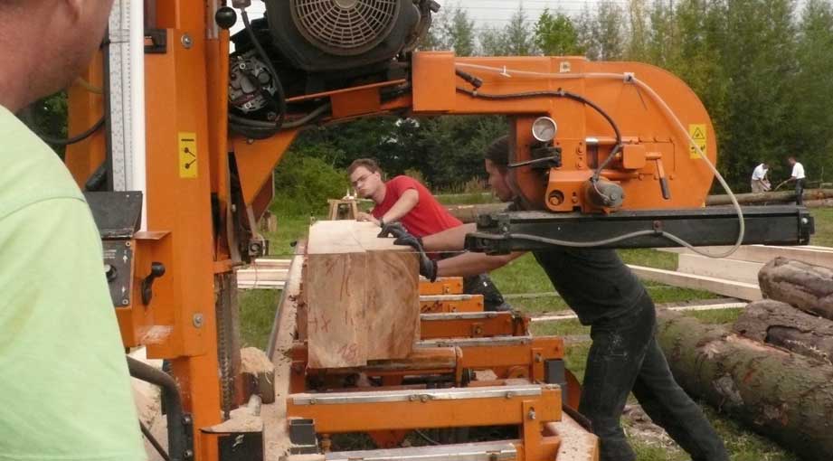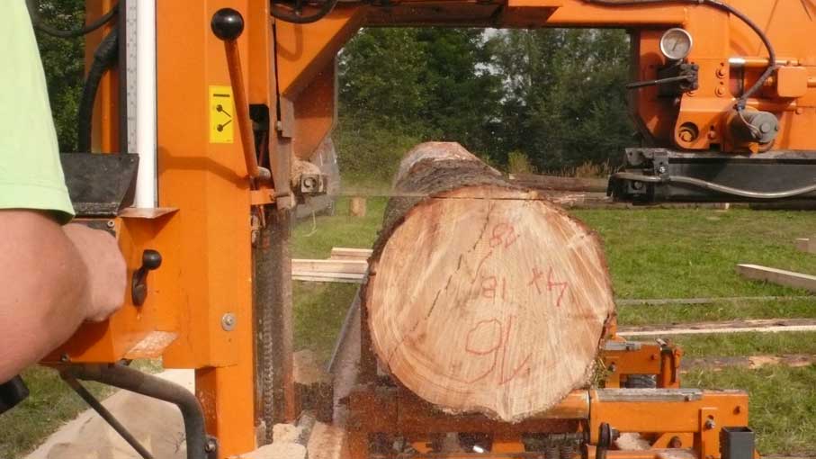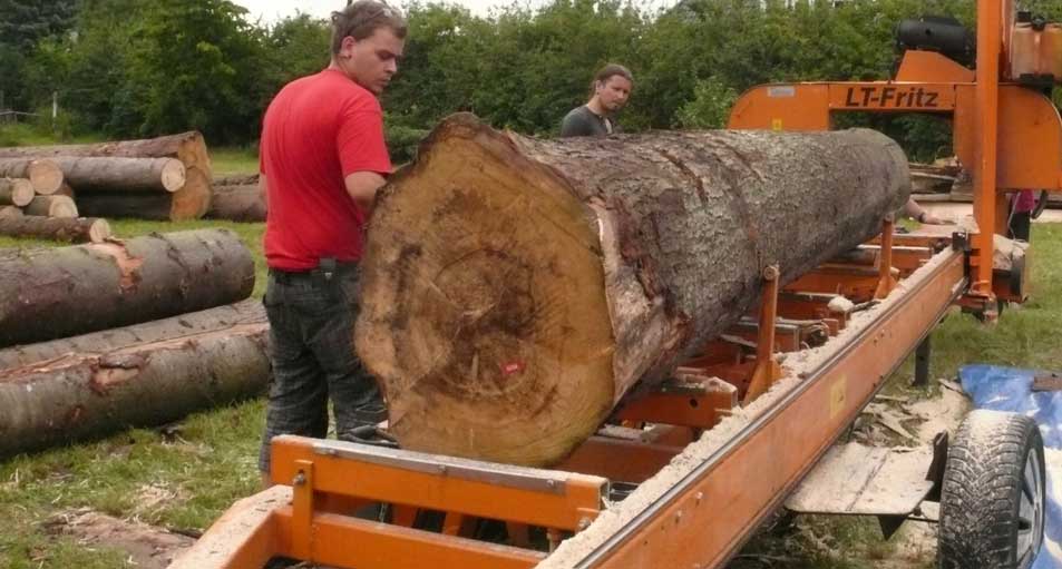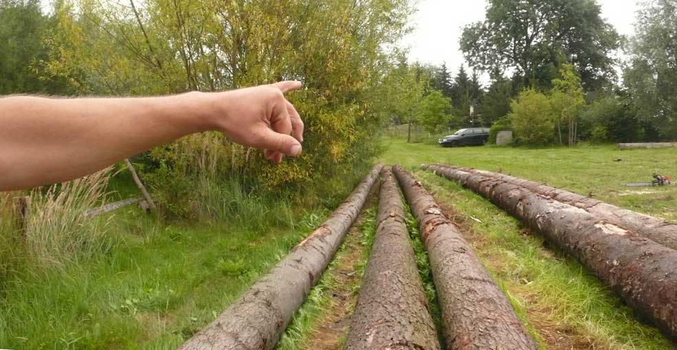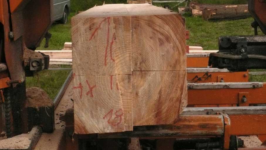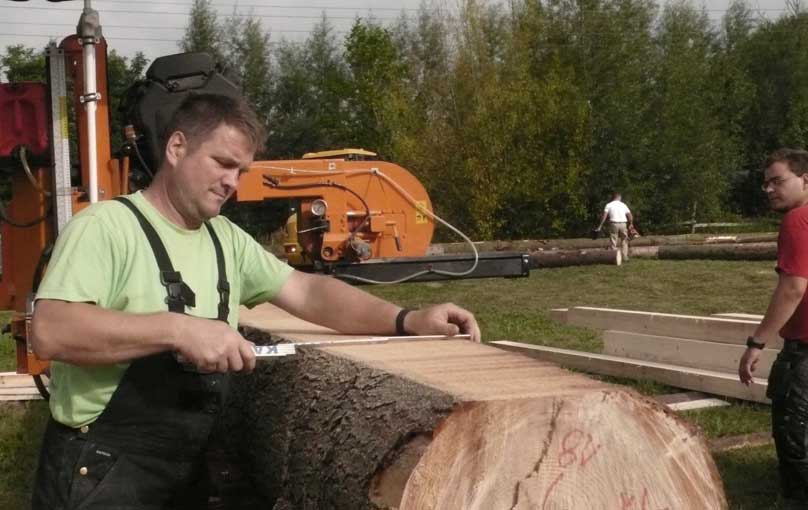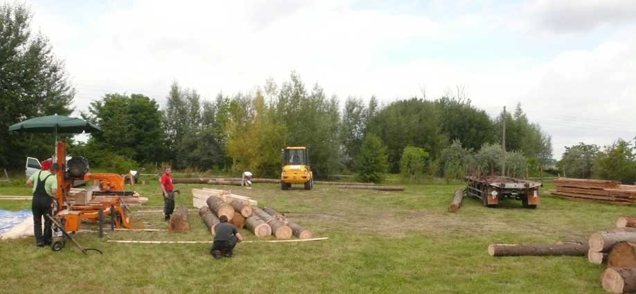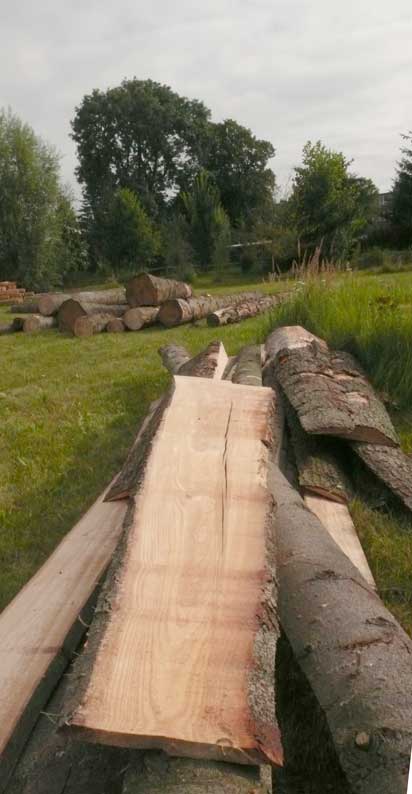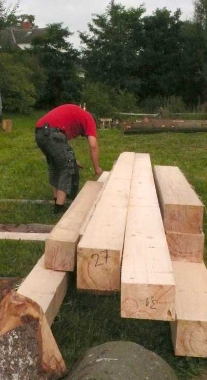 wie aus dem Wald ein Turm wird. Wir wissen es. Aber sehen, tun, dabeisein ist was anderes.Wie aus den Stämmen Bretter, Balken werden, am Ort.