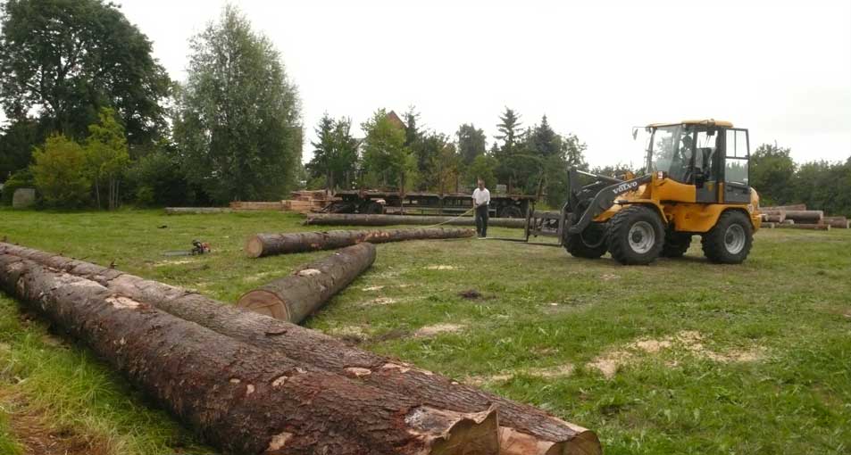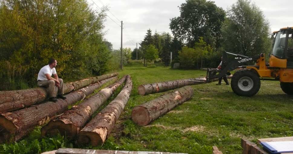 heute Anlieferung des Holzes auf den Bauplatz live am Morgen>