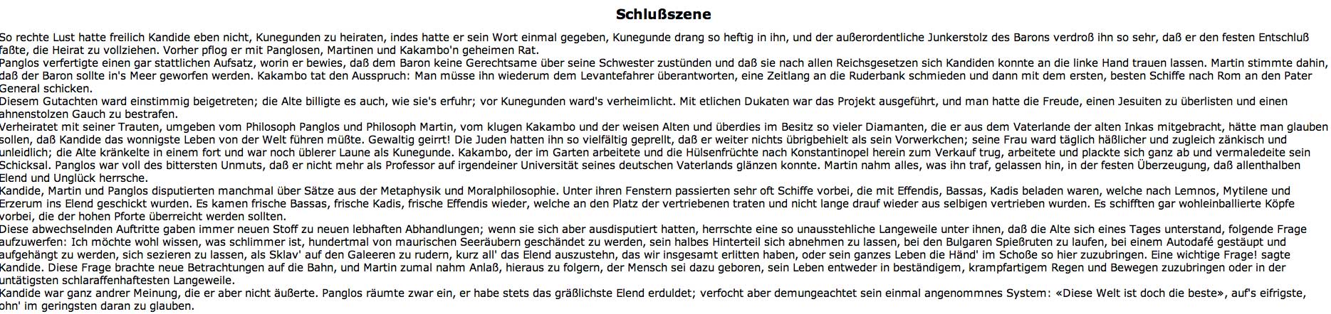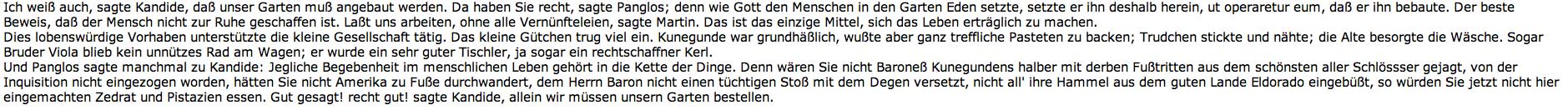 Zwischen diesen beiden Szenen bewegt sich also Candide und seine Lebensreise vom Grund aller Dinge zum Kultivieren des Gartens im Wissen dieser Reise.
