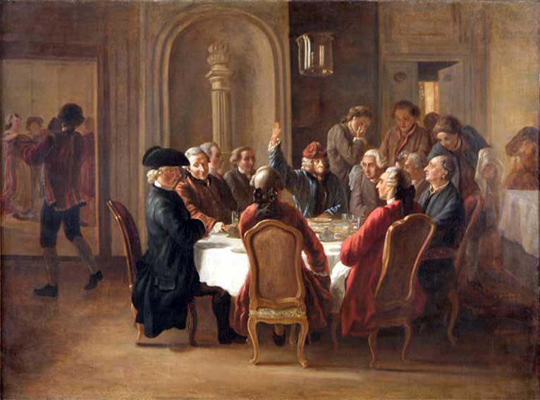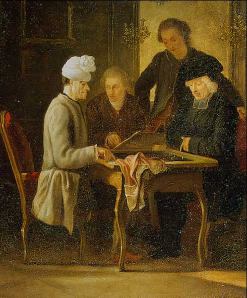 Voltaire mit seinem Jean Huber als Zeichner und Maler am Alter machen sich zum Orbit einer eigenen Welt.