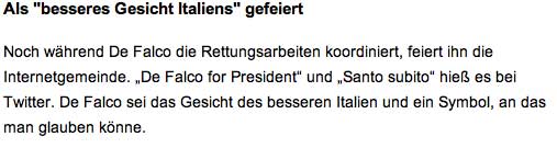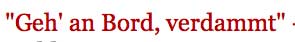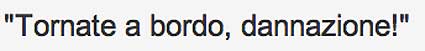 Vada a bordo, cazzo!: Emotionale Aufforderung eines Mitarbeiters der Hafenbehörde von Livorno an Francesco Schettino, Kapitän der havarierten Costa Concordia, auf sein Schiff zurückzukehren, um die Rettung der Passagiere und Besatzungsmitglieder zu leiten. Das Zitat wurde nach dem Unglück so populär, dass es bald auf T-Shirts abgedruckt und auf politische Sachverhalte übertragen wurde.[1]