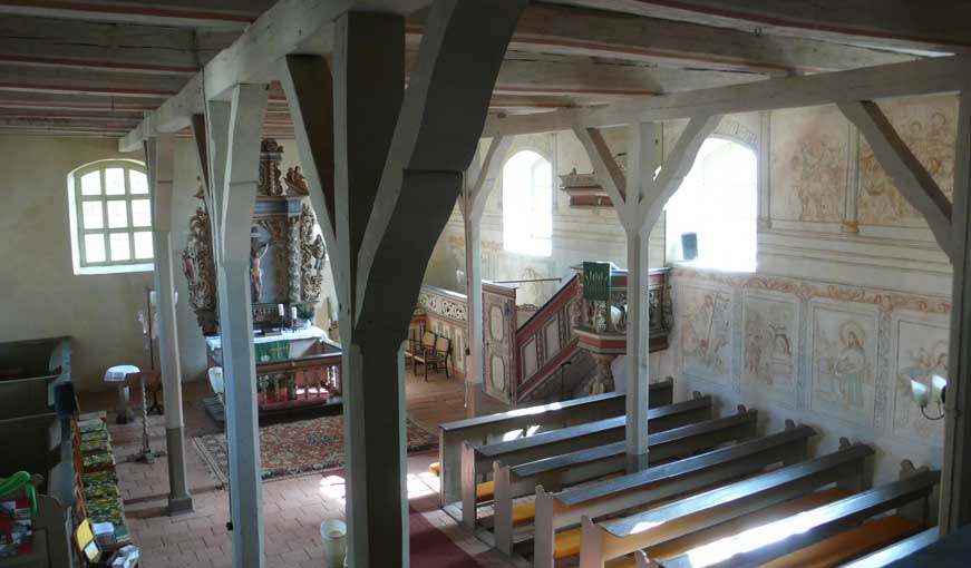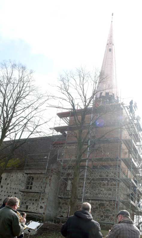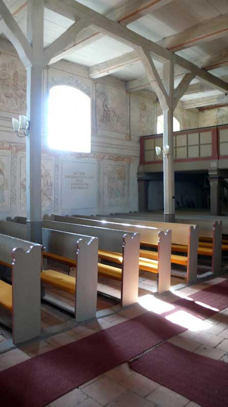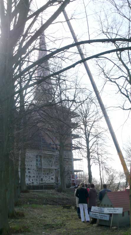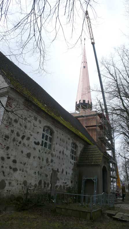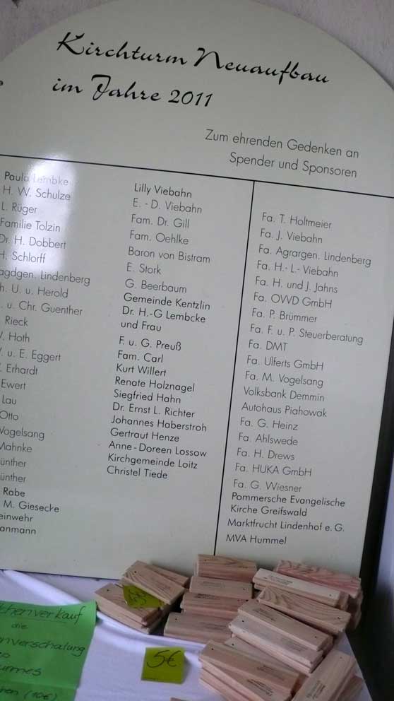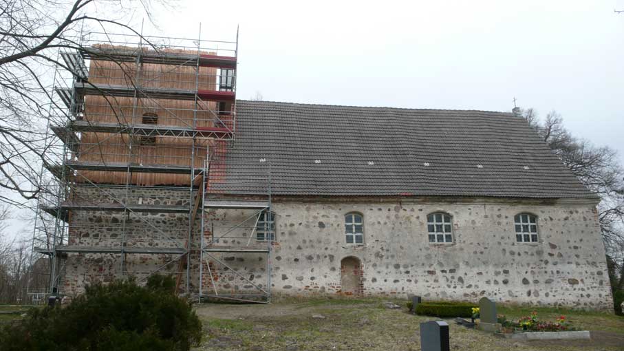 "Von unseren 448 Kirchen in Pommern sind ein knappes Viertel Patronatskirchen. Patronatskirchen sind Kirchen für die der preussische König Baulasten übernommen hatte, die jetzt vom Land M-V getragen werden. Dies Kirchen sind genau bestimmt und wir bekommen für sie jährliche Zahlungen vom Land. Ich glaube nicht, dass Nossendorf dazu gehört, lasse das aber prüfen."